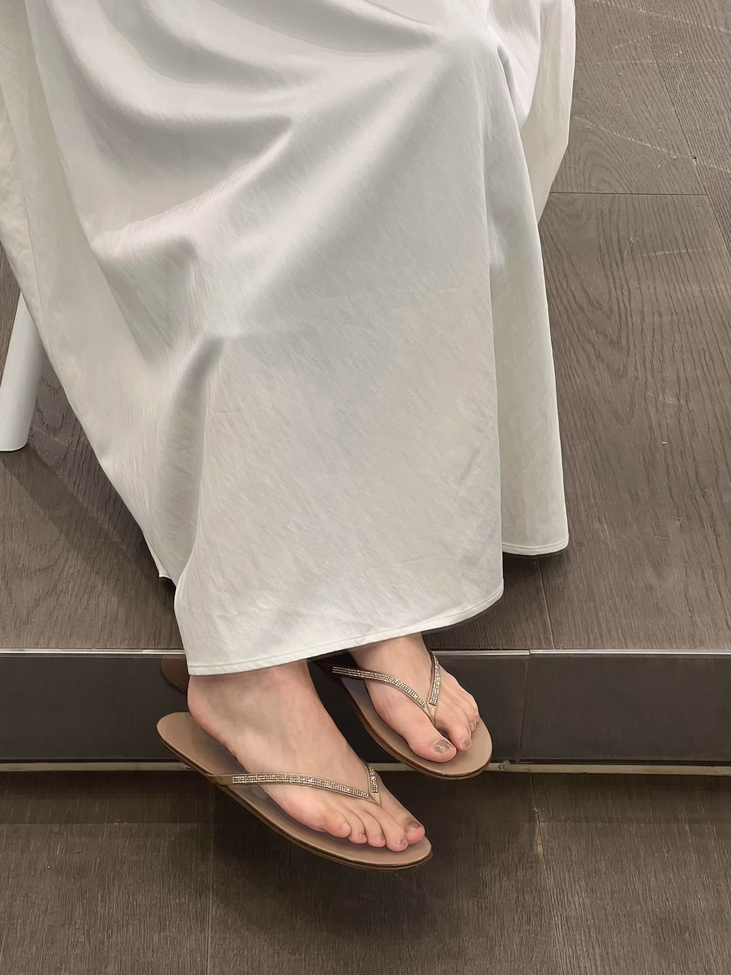 플립 플롭 여성 여름 아우터 2024 새로운 라인스톤 하이 엔드 비치 샌들 페어리 스타일 플랫 플립 플롭스토어 가기