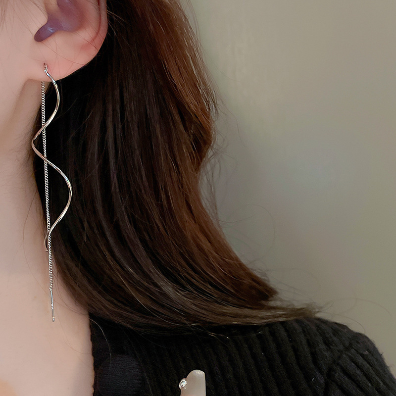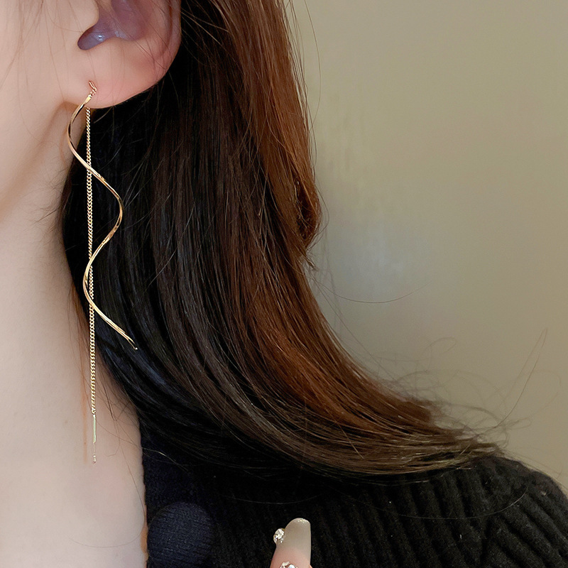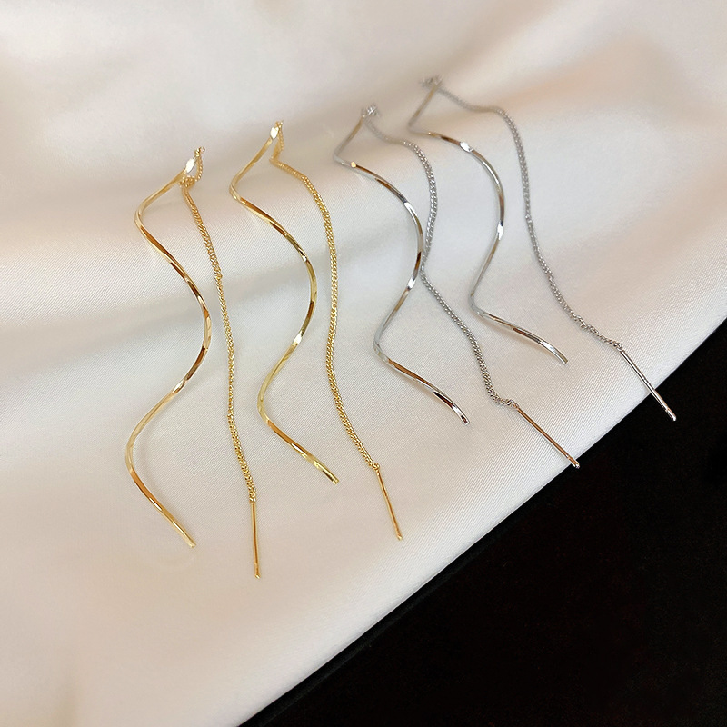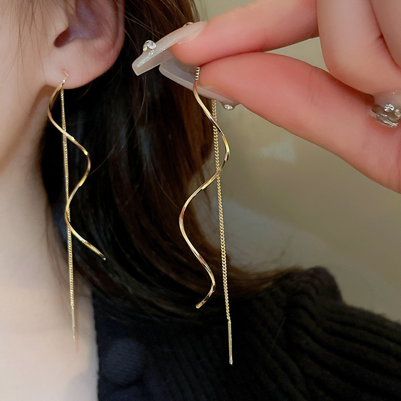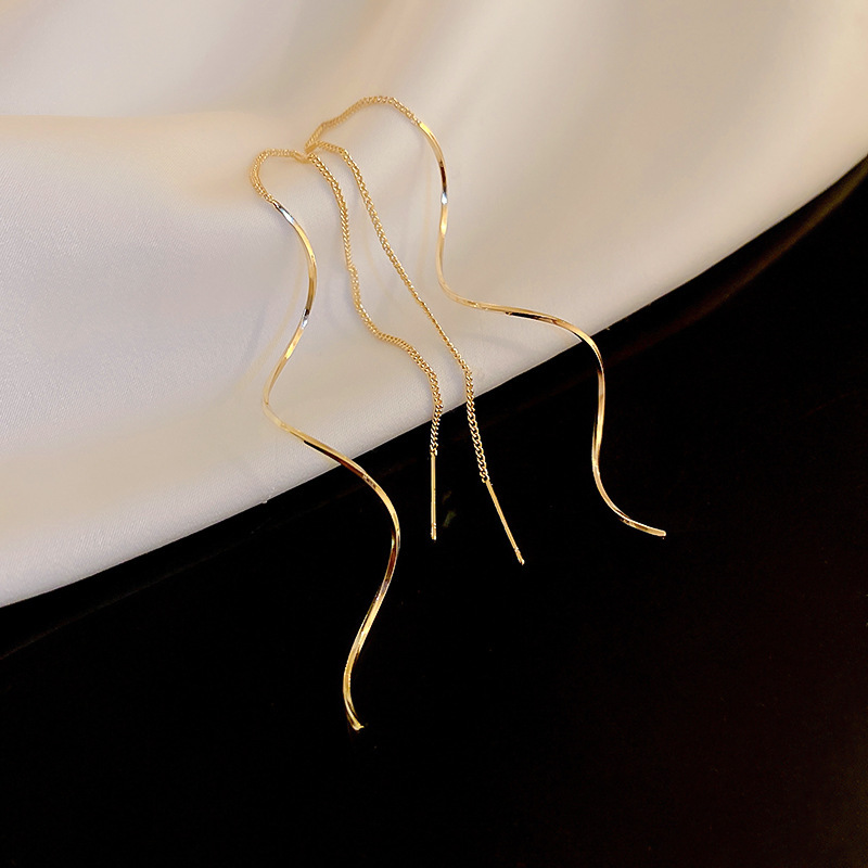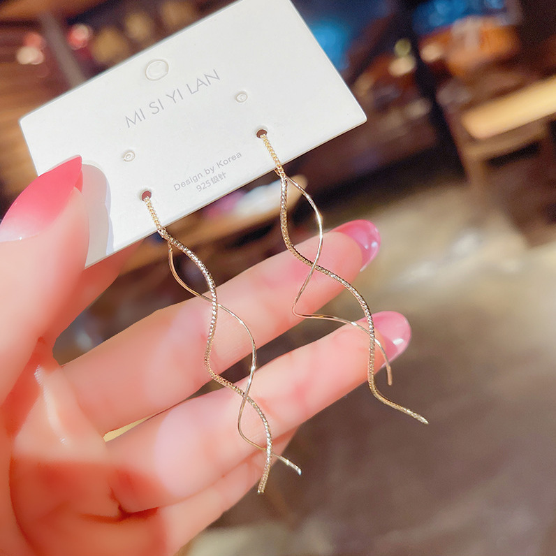 한국 긴 슈퍼 페어리 웨이브 술 이어 라인 틈새 디자인 우아한 우아한 귀걸이 Ins 인터넷 유명 인사 여성을위한 뜨거운 귀걸이