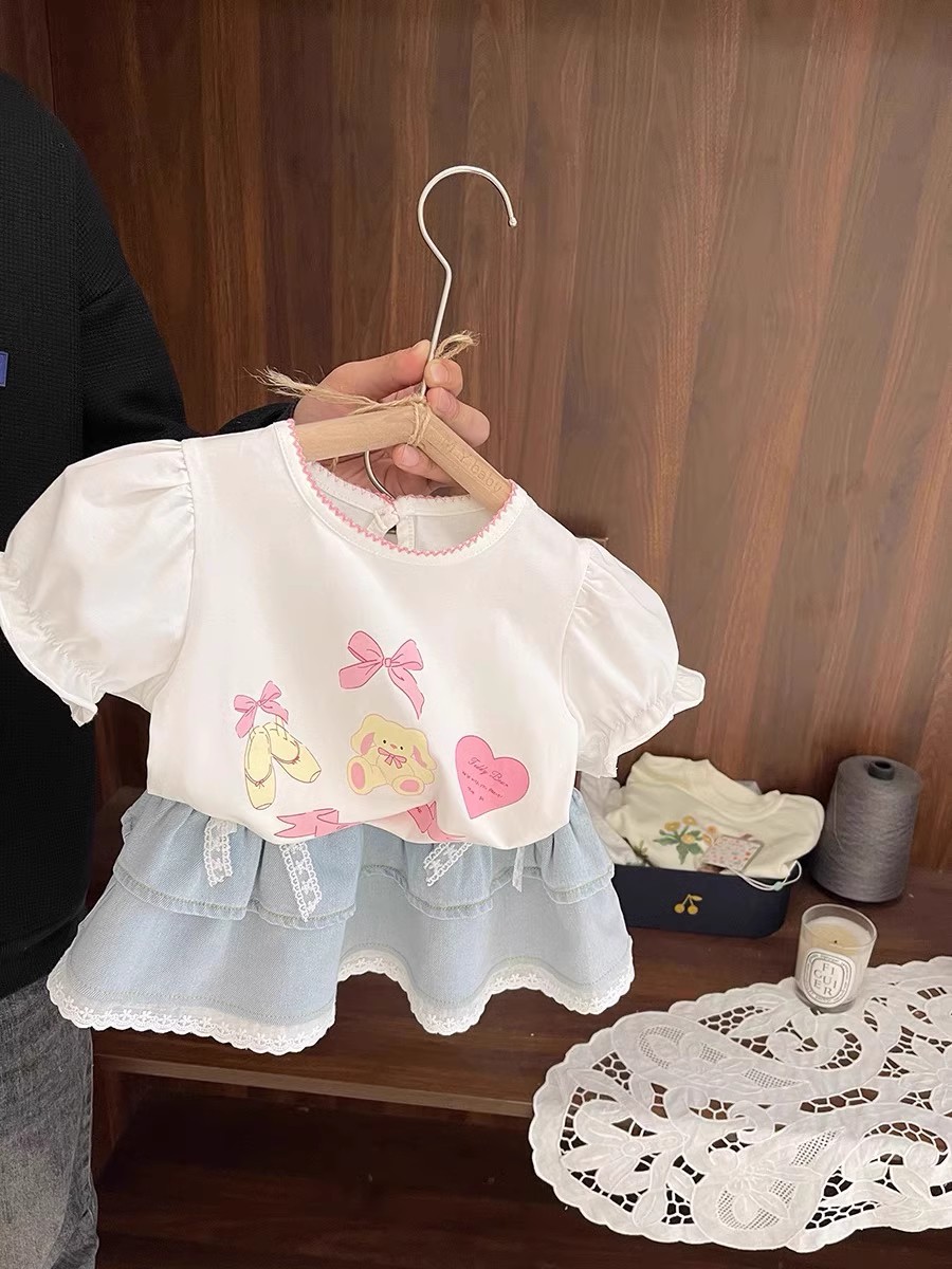 아기 소녀의 레이스 활 데님 스커트 소녀의 봄과 여름 여자 아기의 서양식 케이크 하프 스커트스토어 가기