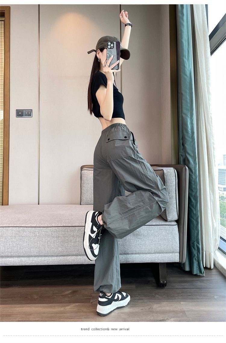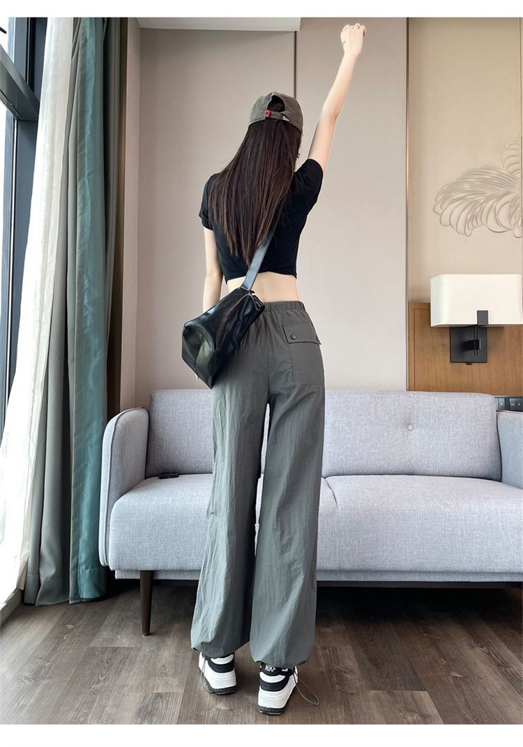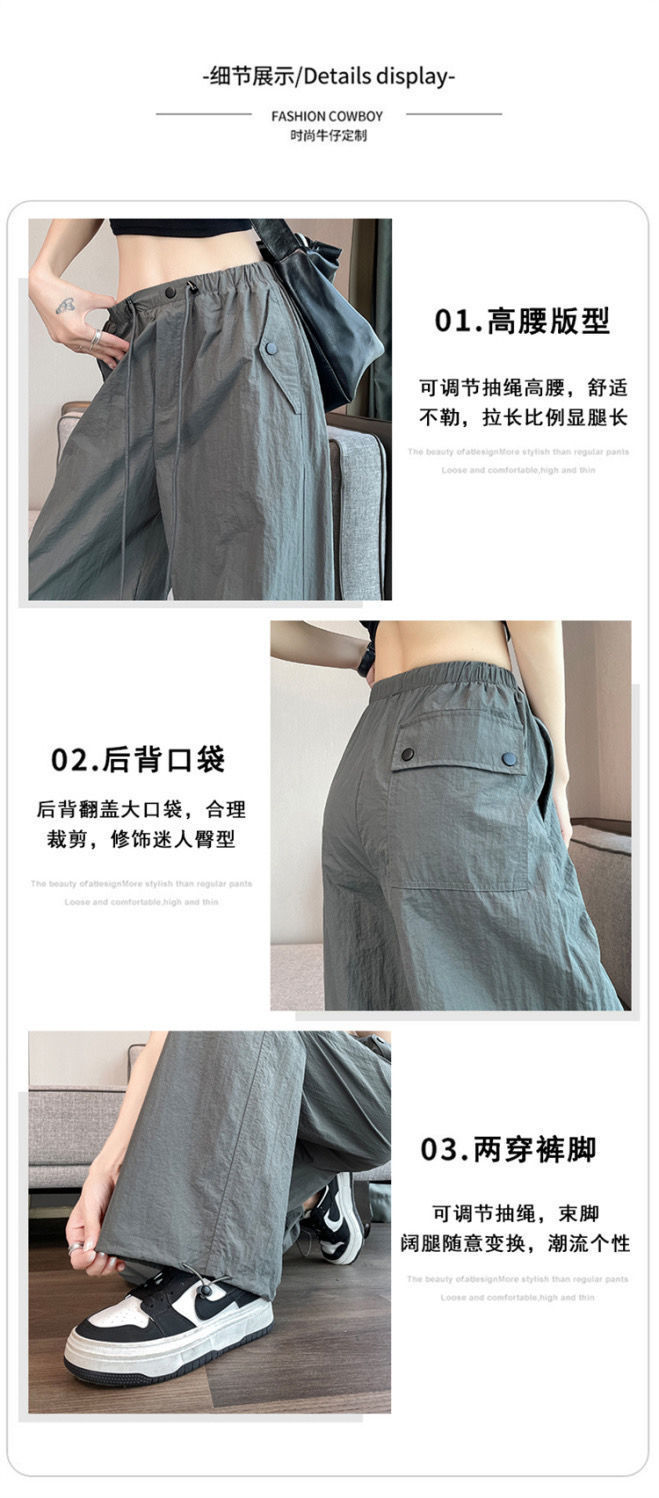 미국식 바지 여성 여름 얇은 2024 새로운 등산 빠른 건조 캐주얼 패션 아이스 실크 선 스크린 스포츠 바지스토어 가기