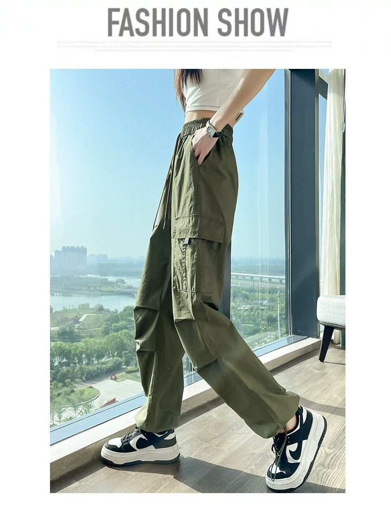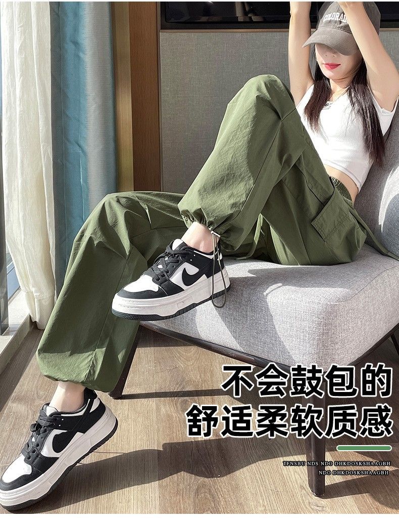 미국식 바지 여성 여름 얇은 2024 새로운 등산 빠른 건조 캐주얼 패션 아이스 실크 선 스크린 스포츠 바지스토어 가기