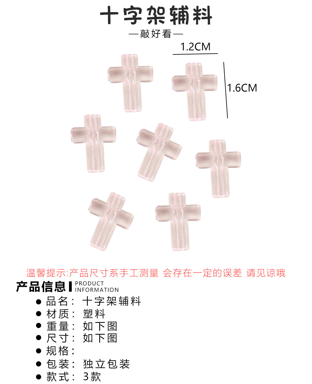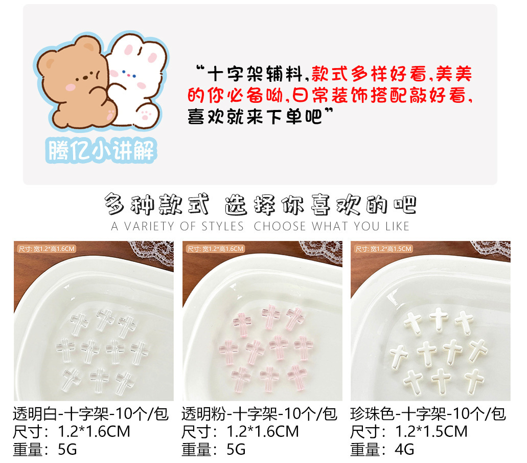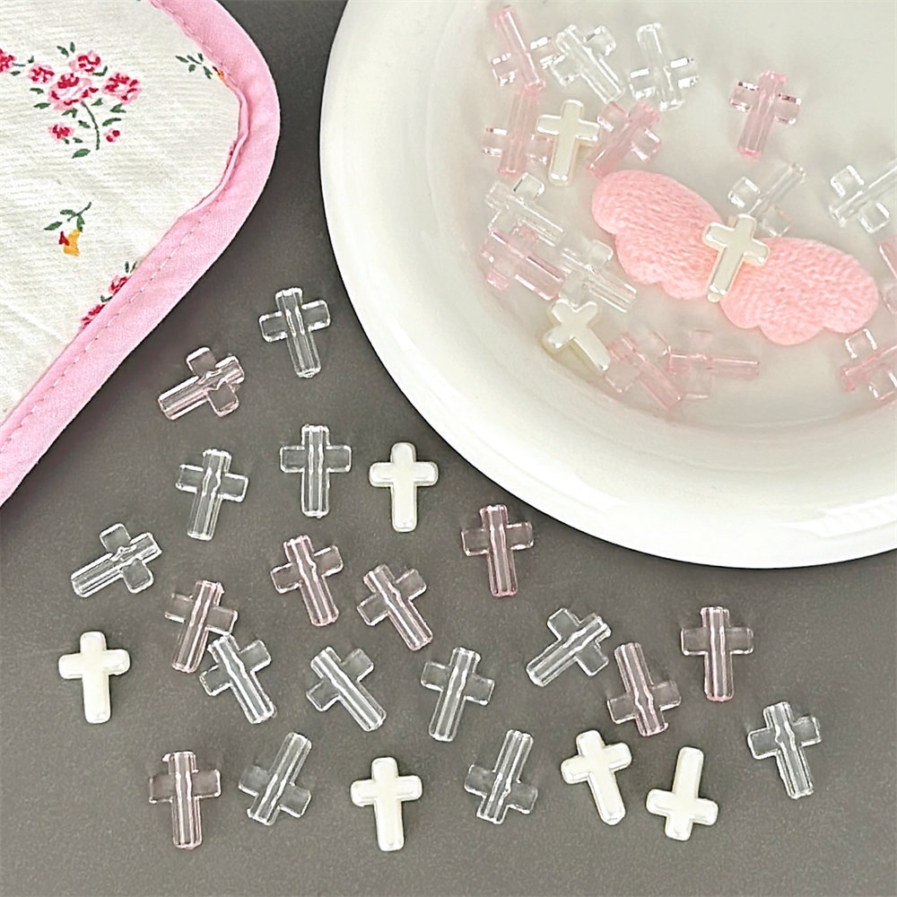 새로운 액세서리 크로스 투명 플라스틱 구슬 장식 DIY 보석 소녀 장식 작은 카드 소재 가방 도매스토어 가기