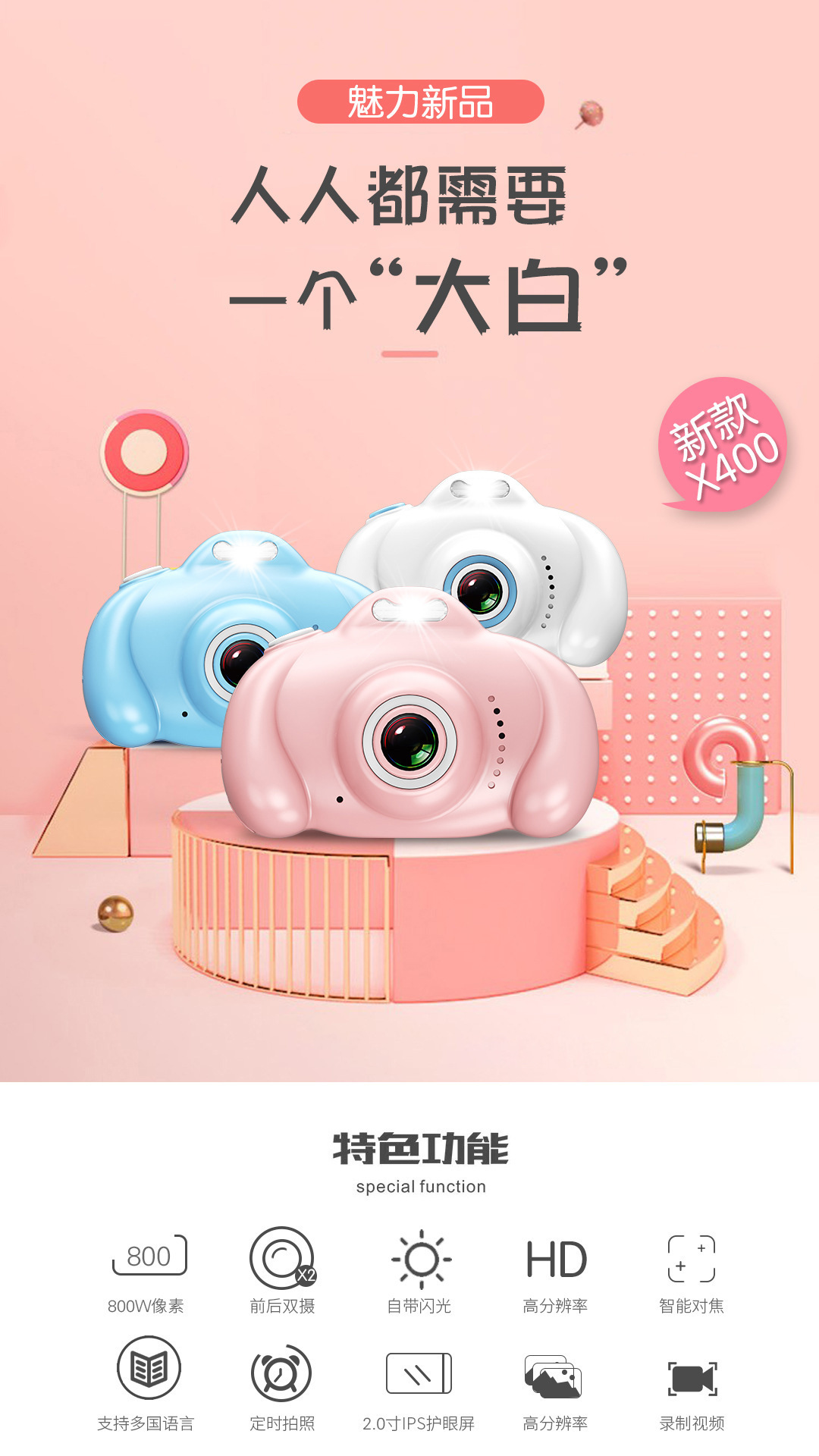 产品功能:照相, 录像,玩游戏,玩具