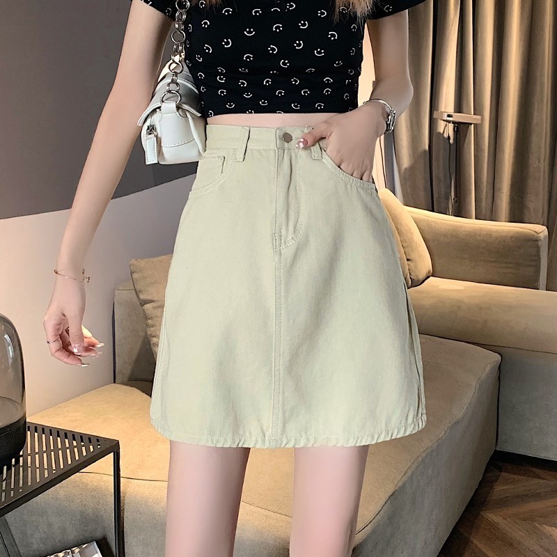 높은 허리 데님 스커트 여자 여름 2024 새로운 플러스 사이즈 느슨한 슬리밍 캐주얼 올 매치 A 라인 힙합 스커트스토어 가기