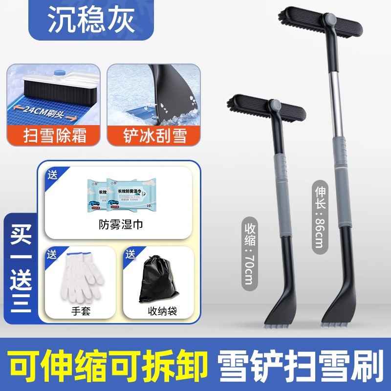 • 업그레이드 모델·차분한 그레이 [두꺼운 합금 + 텔레스코픽 연장 + 회전 칫솔모 + 탈부착 가능 + 옥스퍼드 아이스 브레이킹 삽] 제설★해동★얼음을 삽으로 치우다