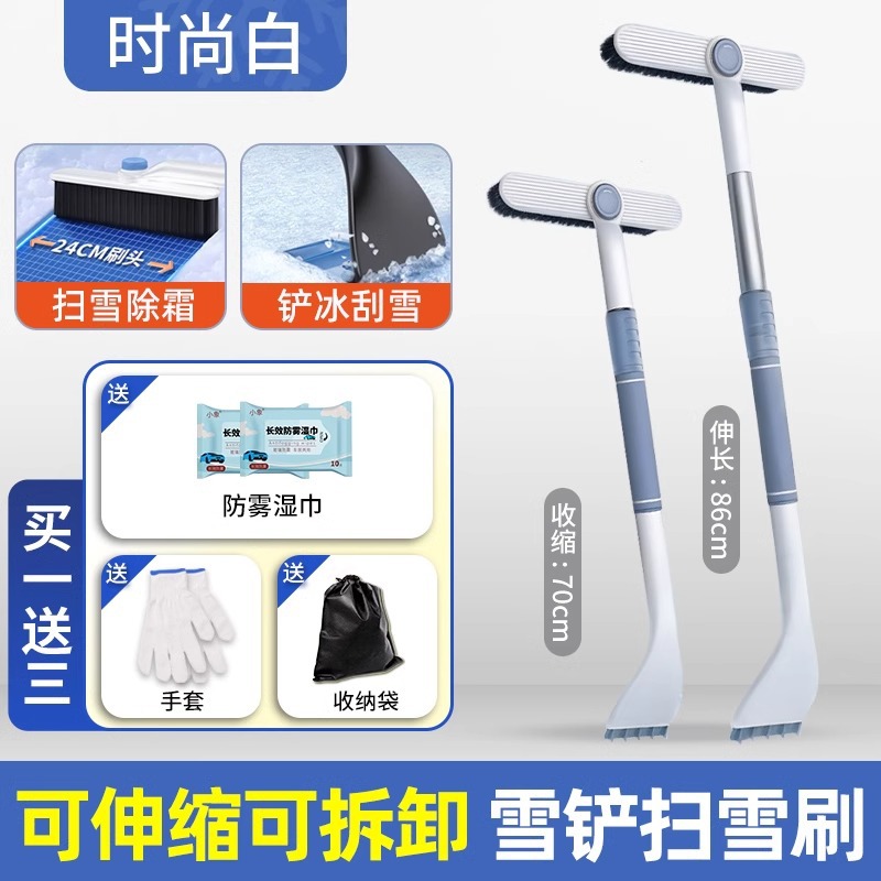 • 업그레이드 모델·패셔너블한 화이트 [두꺼운 합금 + 텔레스코픽 연장 + 회전 칫솔모 + 탈부착 가능 + 옥스퍼드 아이스 브레이킹 삽] 제설 ★ 해동 ★ 얼음을 삽으로 치우다