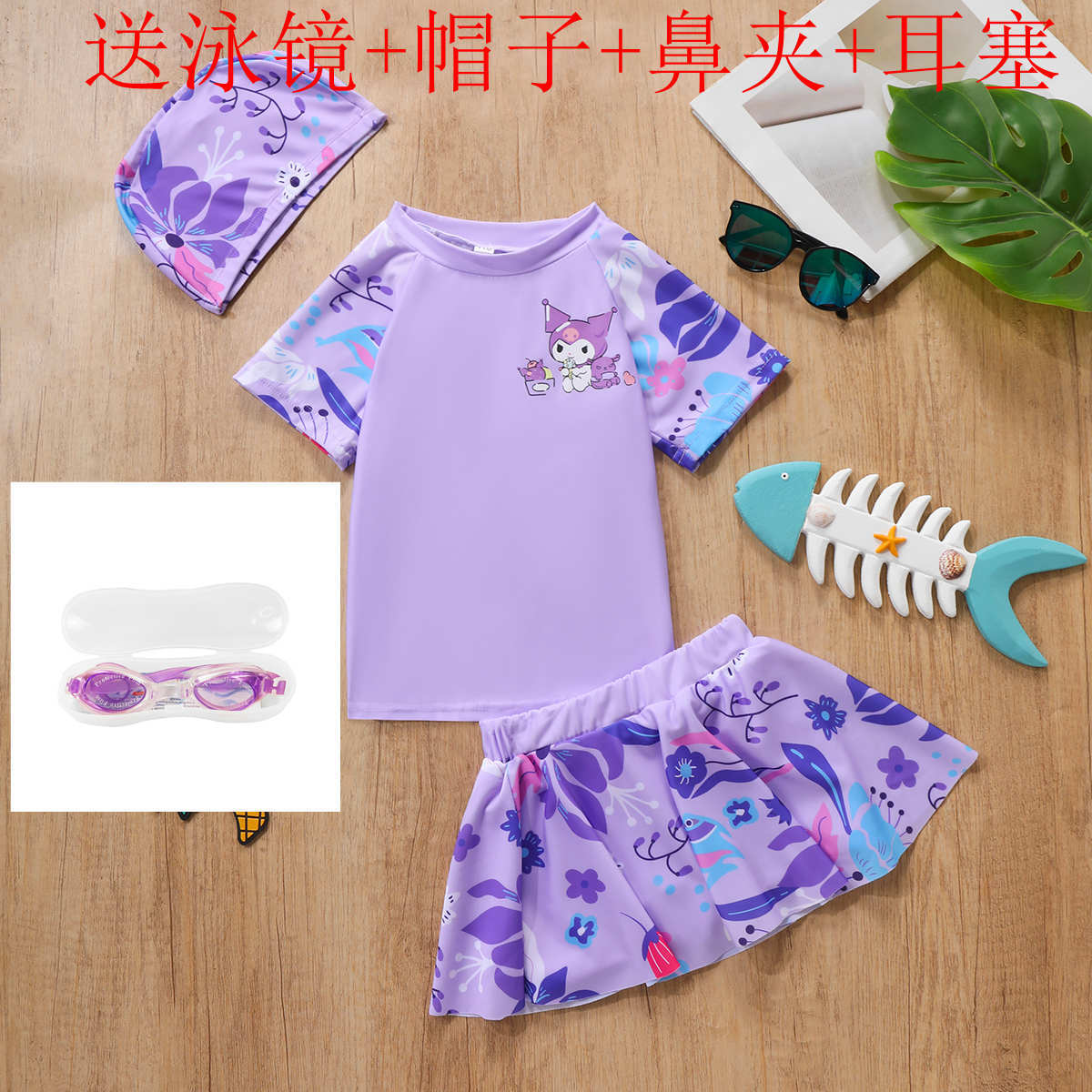 • 스플릿 스커트 보라색 세트 (수영 모자, 수영 고글, 코 클립 및 이어 플러그)