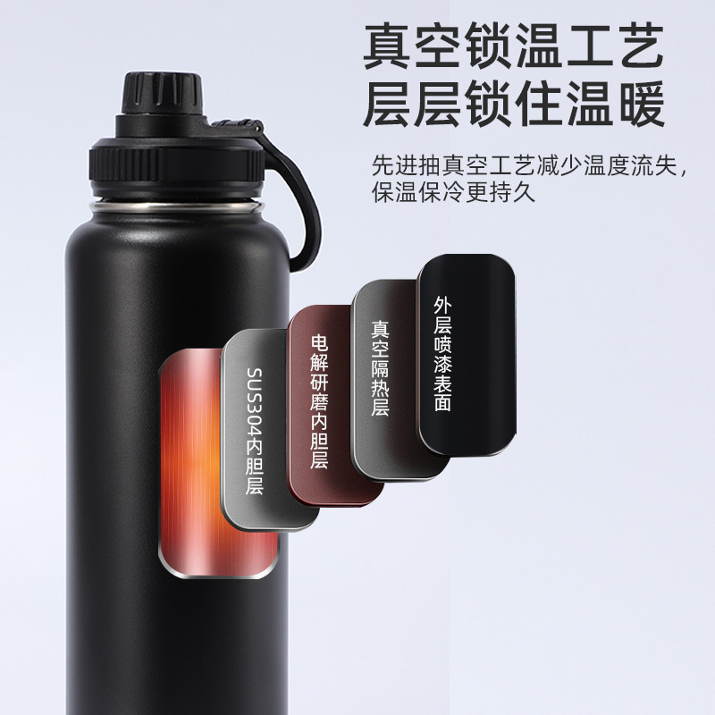 두꺼운 304 스테인레스 스틸 더블 레이어 보온병 야외 대용량 스포츠 물병 미국 등산 휴대용 우주 냄비