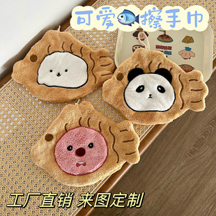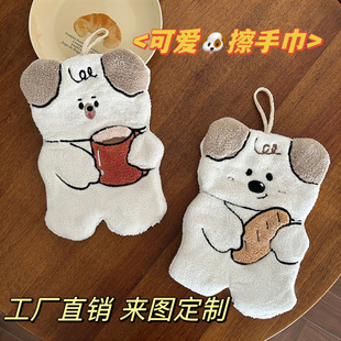 卡通可爱小狗擦手巾厨房挂式抹布珊瑚绒超强吸水熊猫刺绣擦手毛巾