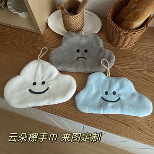 卡通可爱云擦手巾可挂式不掉毛超强吸水厨房用品儿童方巾擦手毛巾