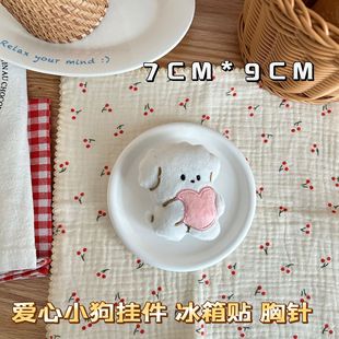 爱心小狗毛绒挂件卡通少女心公仔玩偶胸针刺绣钥匙扣毛绒冰箱贴