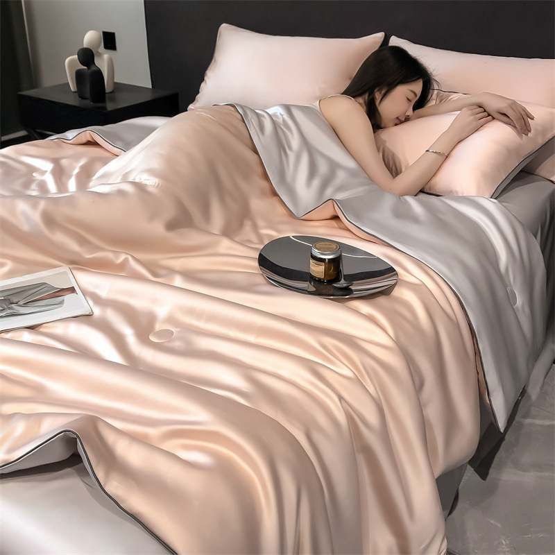 Lyocell Tencel 여름 퀼팅 클래스 여름 쿨 에어컨 퀼팅 4 피스 세트 머신 세탁기 세탁기 솔리드 컬러 여름 퀼팅