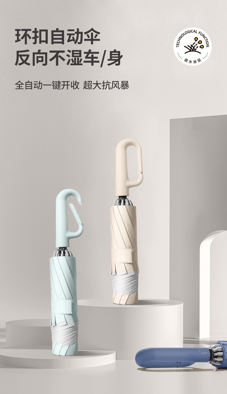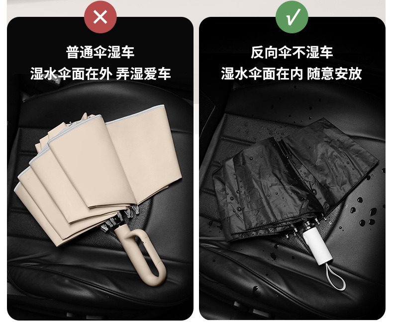 10 뼈 완전 자동 잠금 리버스 우산 280T 두껍게 확장 된 휴대용 3 접이식 광고 선물 우산 맞춤형 로고