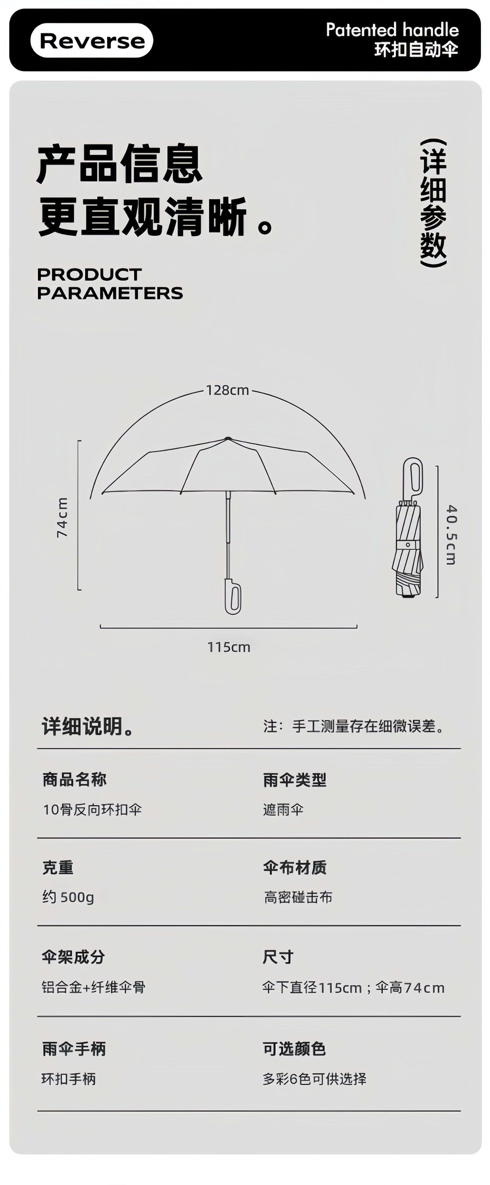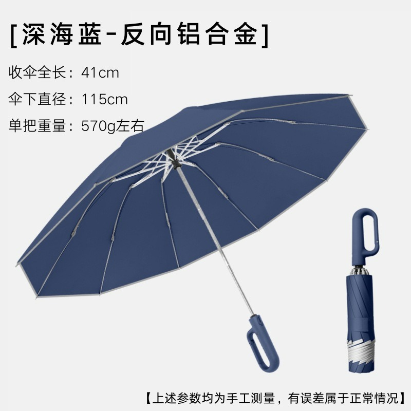 • 10 뼈 자동 역방향 알루미늄 합금 해골 링 버클 우산 280t 임팩트 패브릭