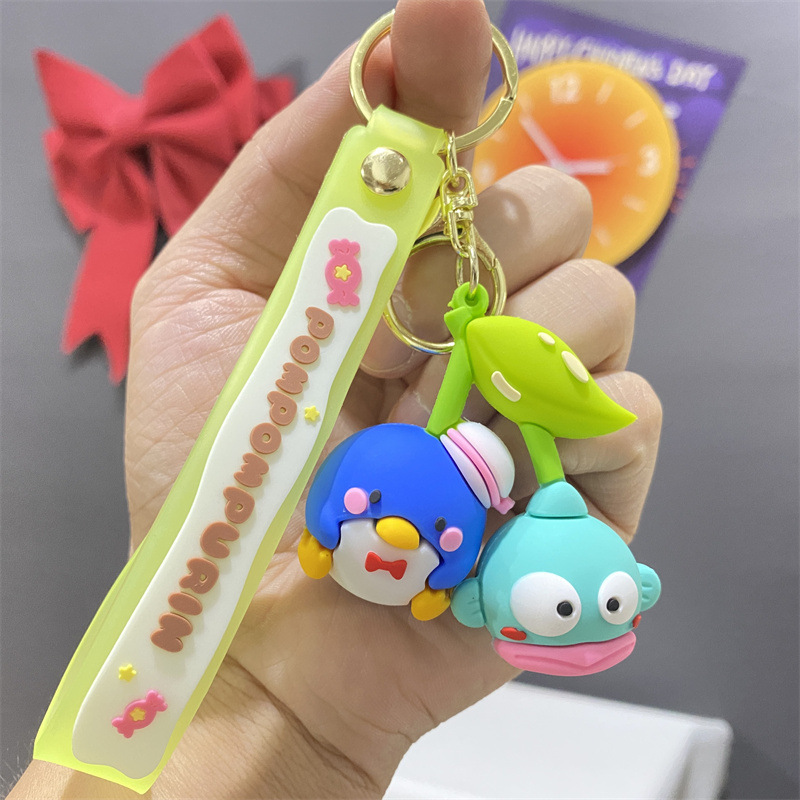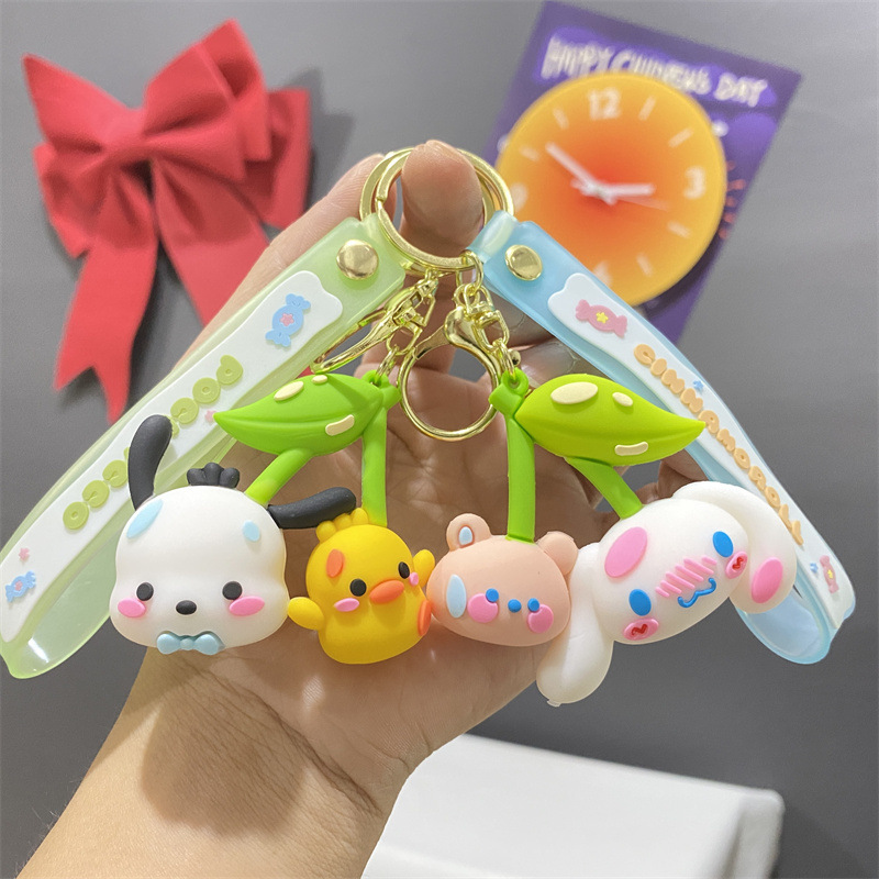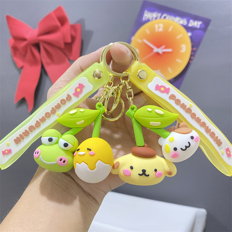 새로운 만화 Kulomi 콩 콩나물 산리오 키 체인 펜던트 귀여운 커플 인형 교수형 인형 기계 선물