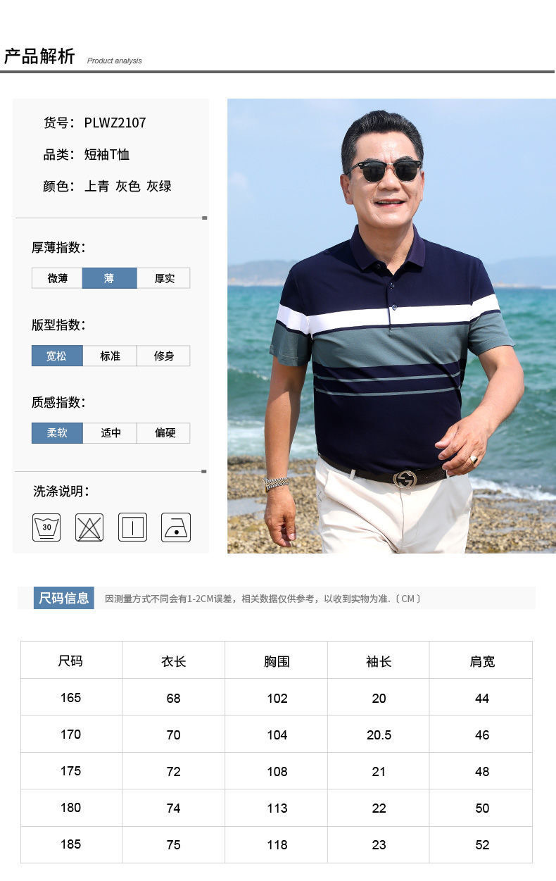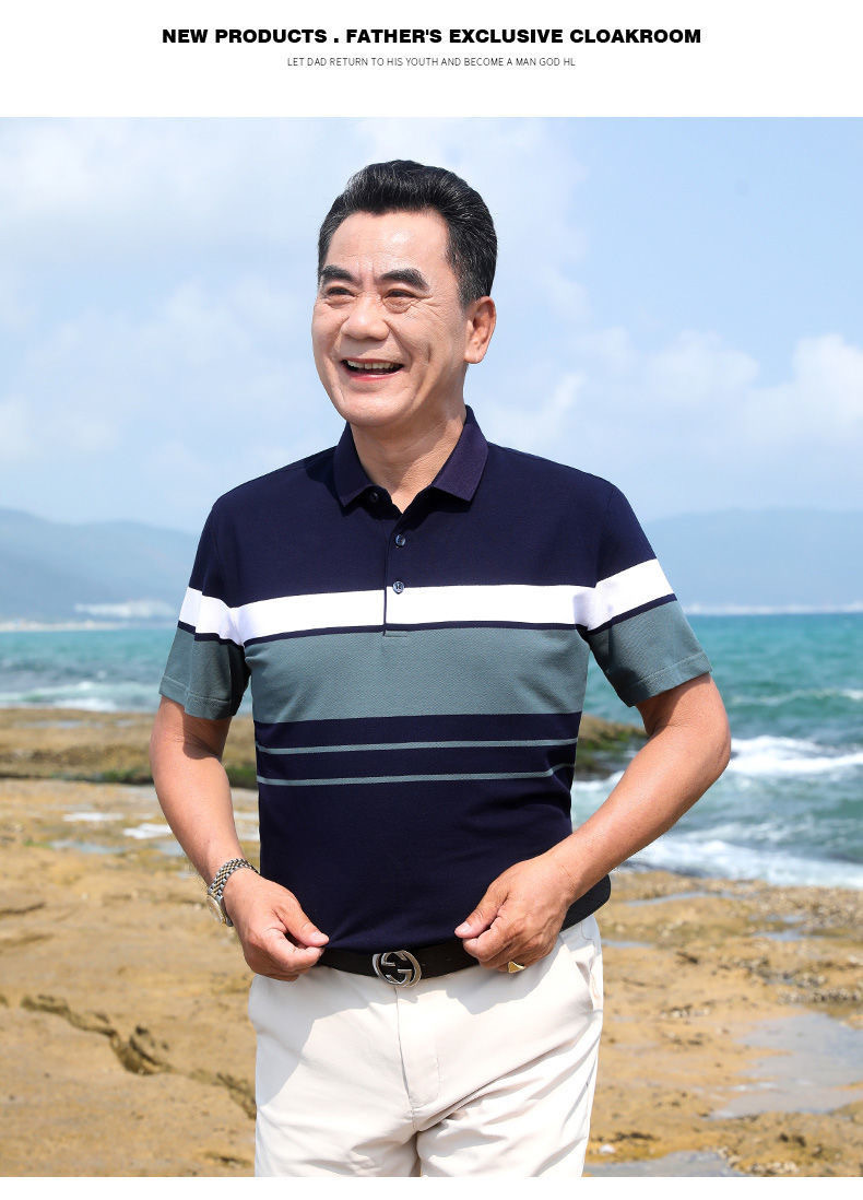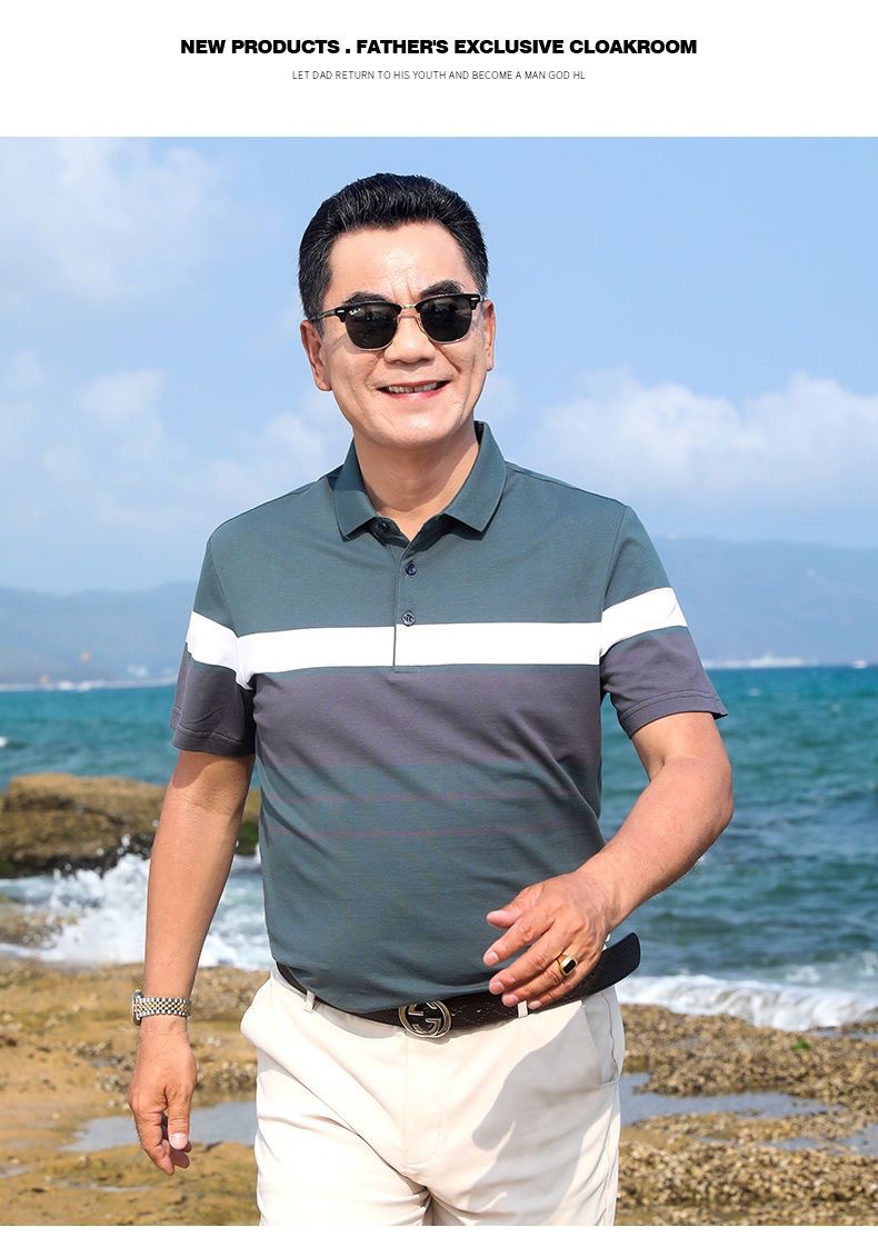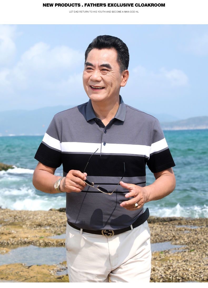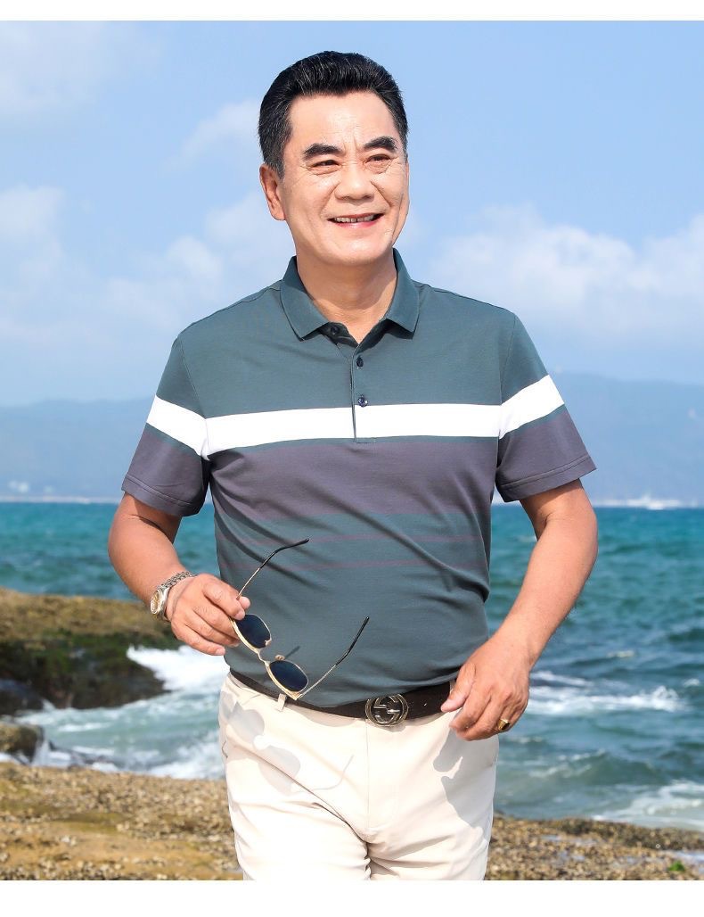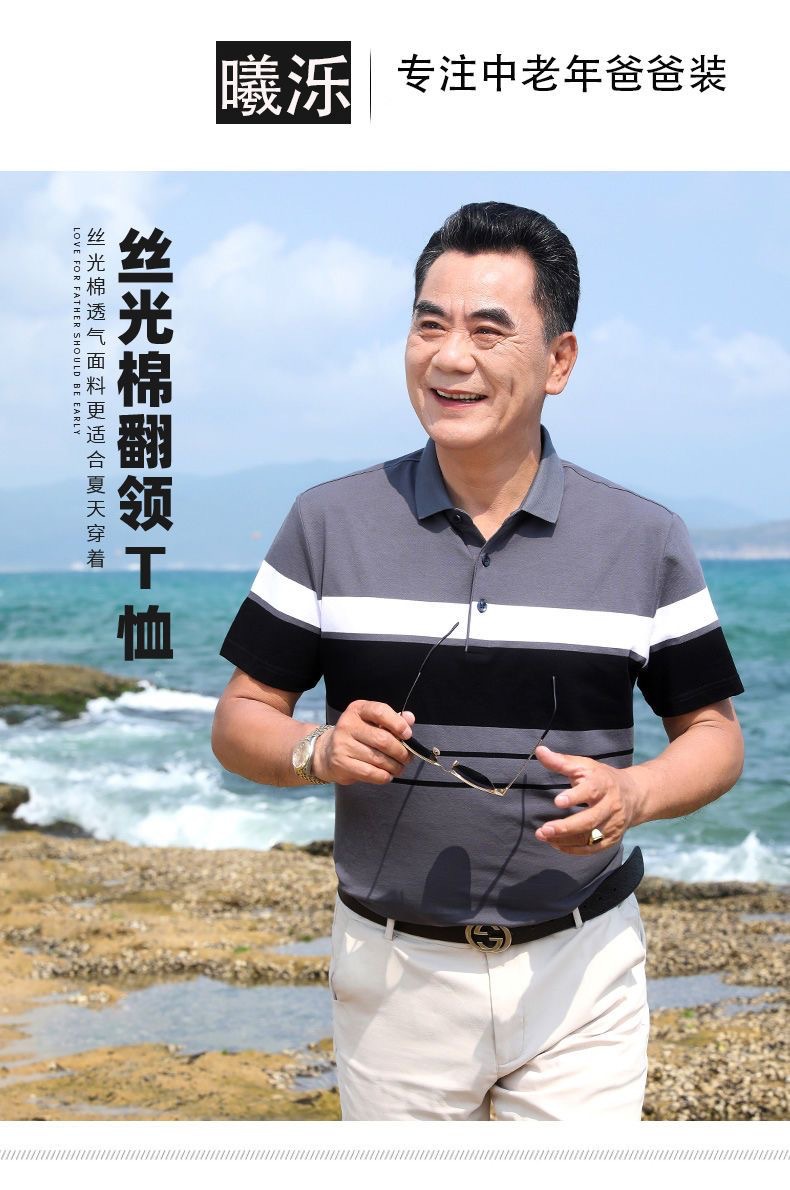 아빠의 여름 반팔 티셔츠 중년 및 노인 남성 실크면 최고 중년 남성 캐주얼 폴로 셔츠 아버지