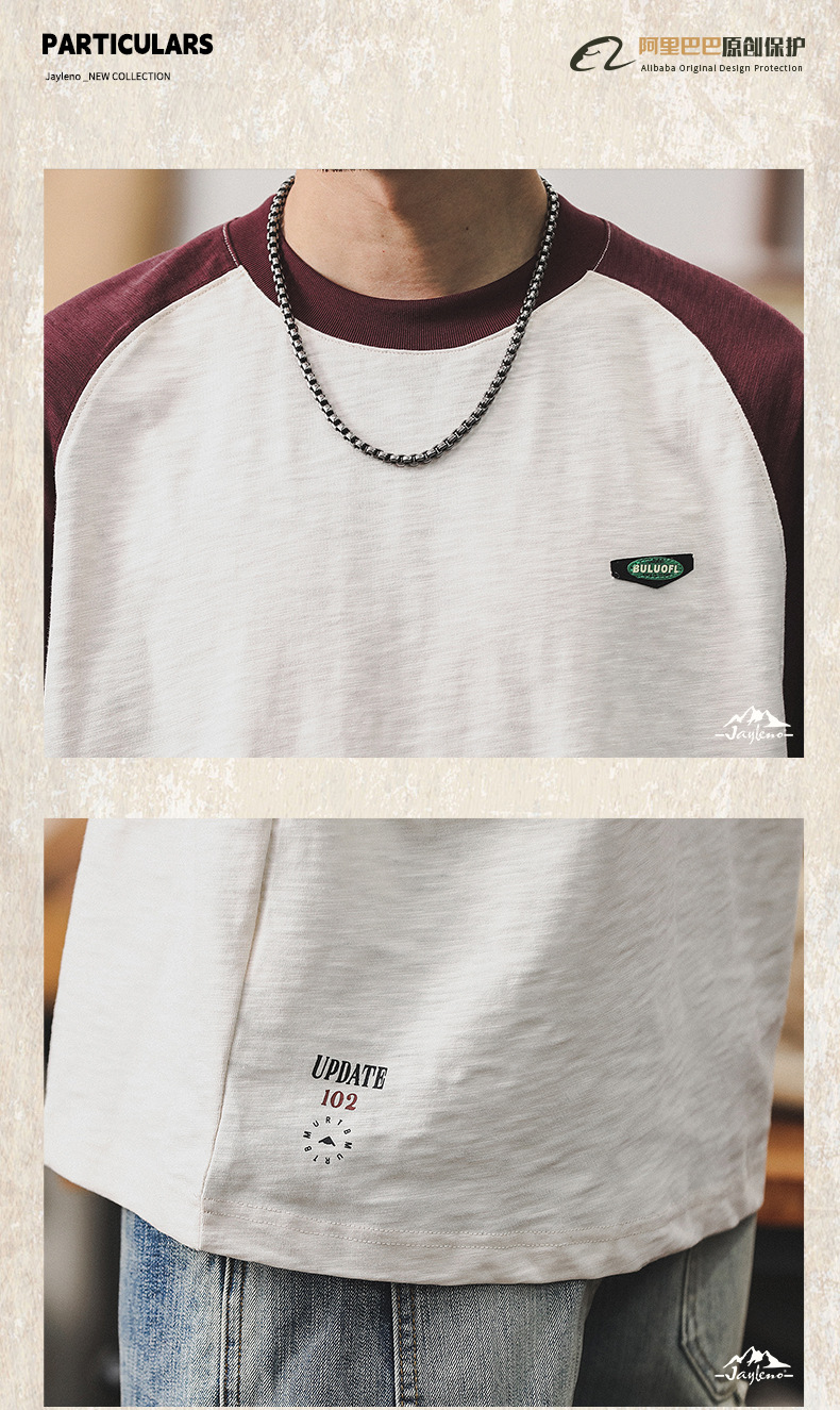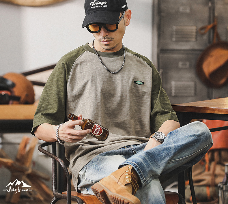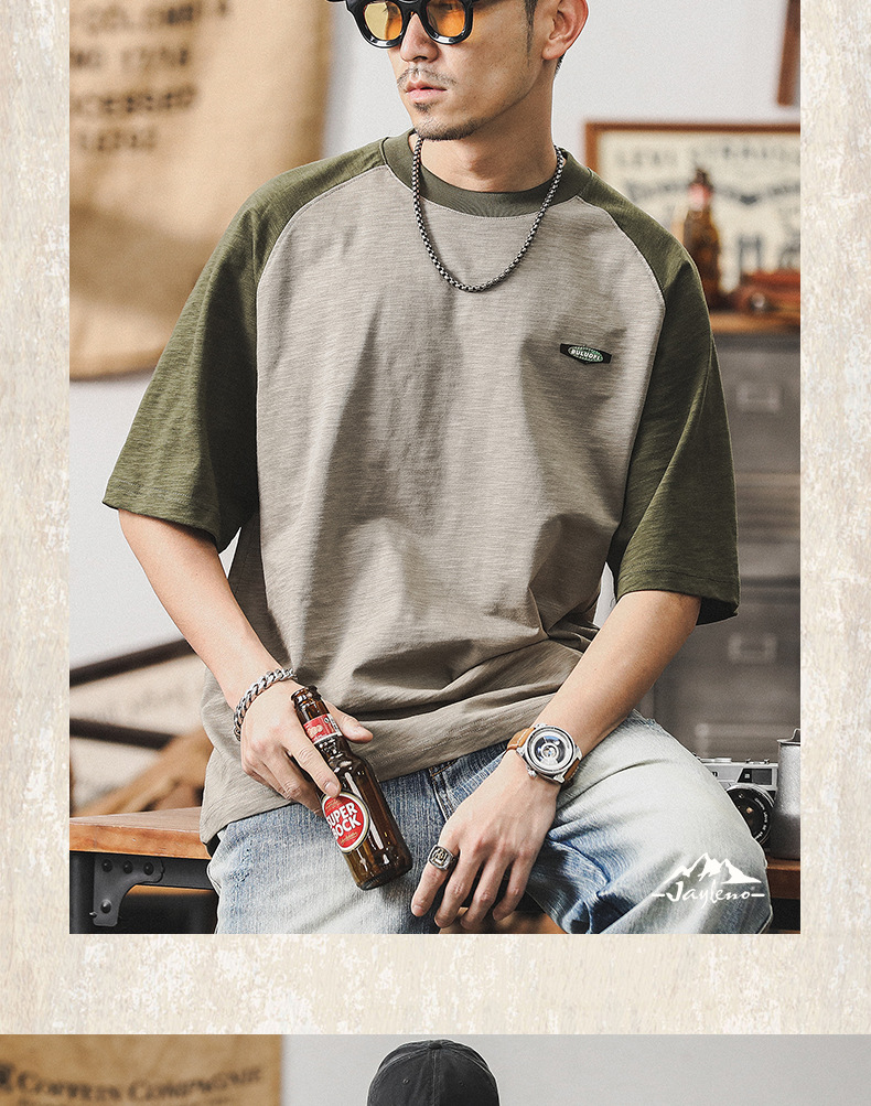 미국 복고풍 대비 티셔츠 남성 반팔 여름 250g 무거운 대나무 티셔츠 조수 브랜드 느슨한 플러스 사이즈 재킷