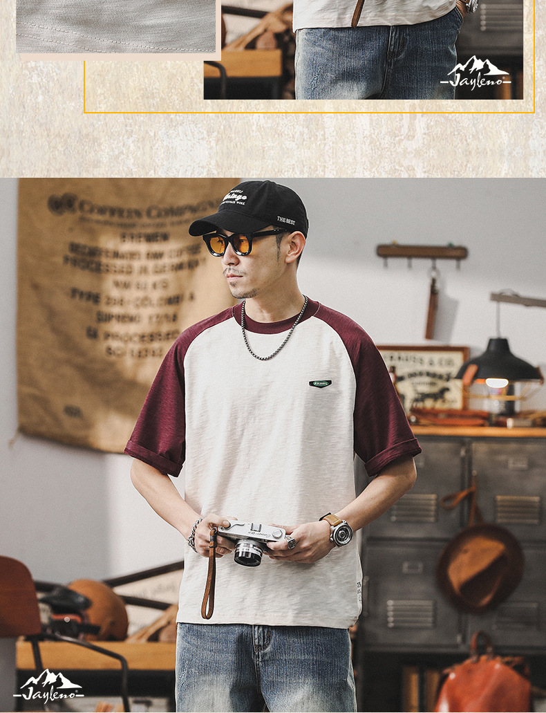 미국 복고풍 대비 티셔츠 남성 반팔 여름 250g 무거운 대나무 티셔츠 조수 브랜드 느슨한 플러스 사이즈 재킷스토어 가기