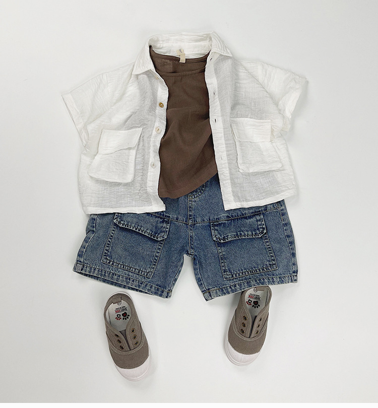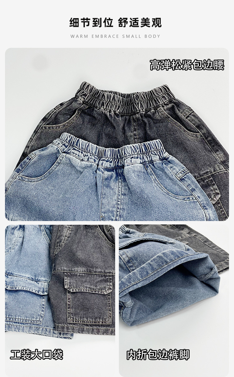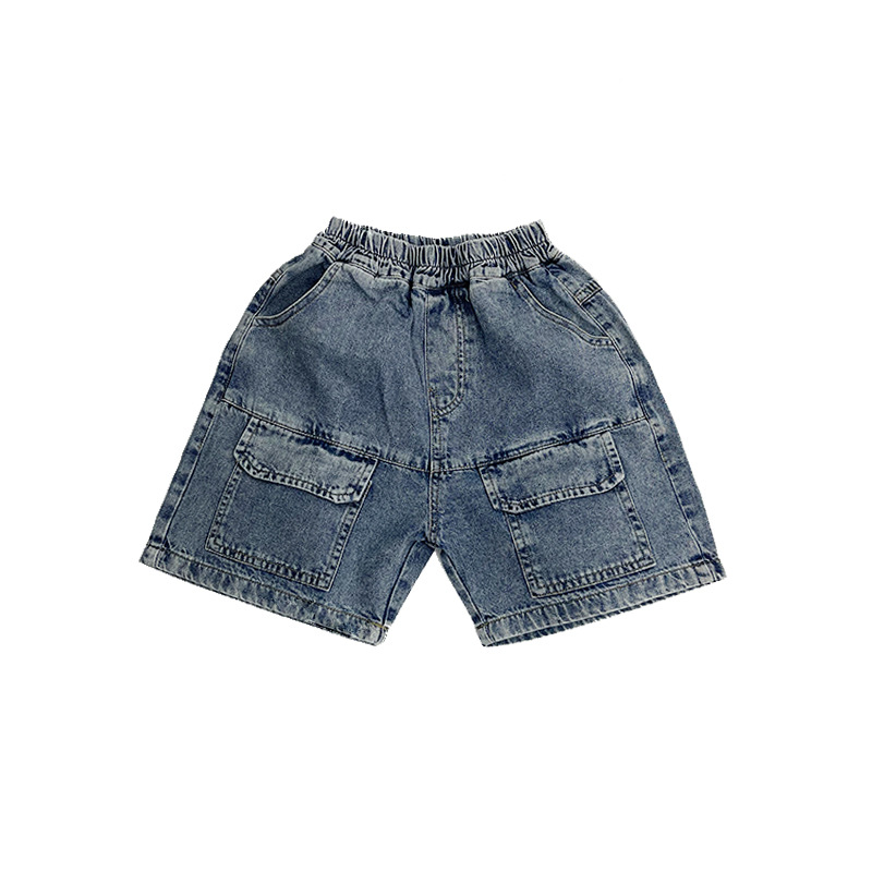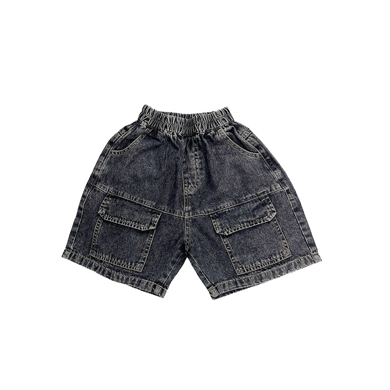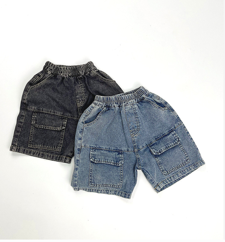 한국판 신상 2025 스타일 반바지 아동용 여름 남아 여아용 큰 주머니 루즈핏 캐주얼 카고 데님 팬츠