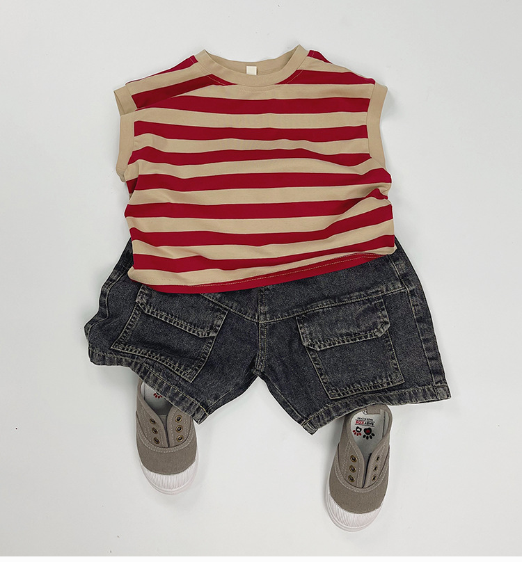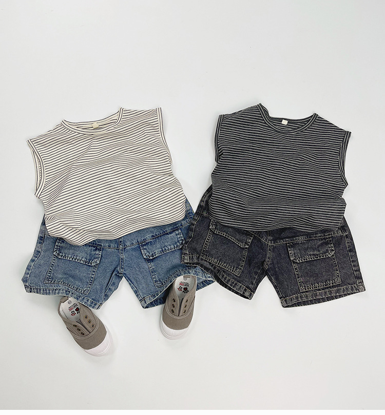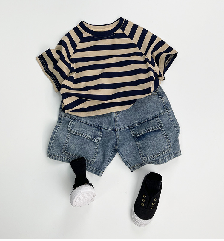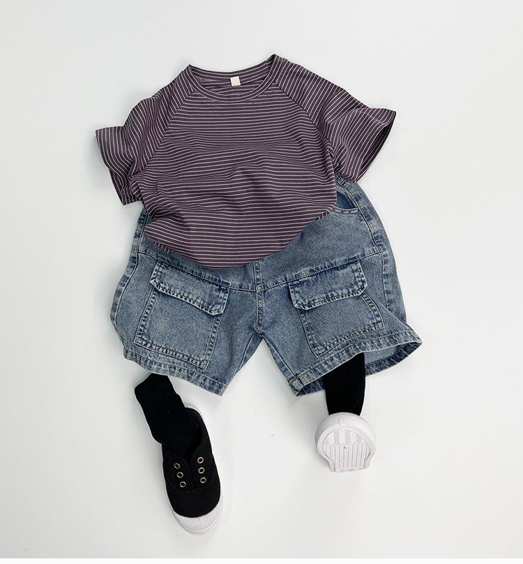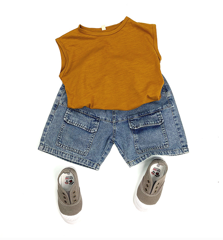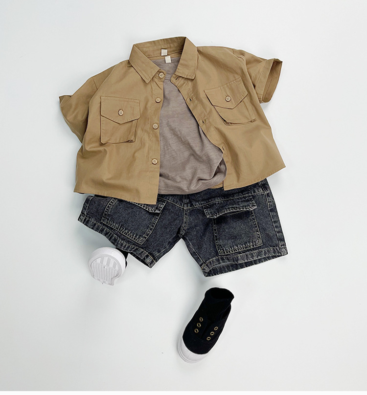 한국판 신상 2025 스타일 반바지 아동용 여름 남아 여아용 큰 주머니 루즈핏 캐주얼 카고 데님 팬츠