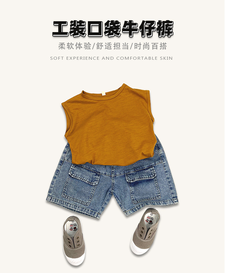 한국판 신상 2025 스타일 반바지 아동용 여름 남아 여아용 큰 주머니 루즈핏 캐주얼 카고 데님 팬츠스토어 가기