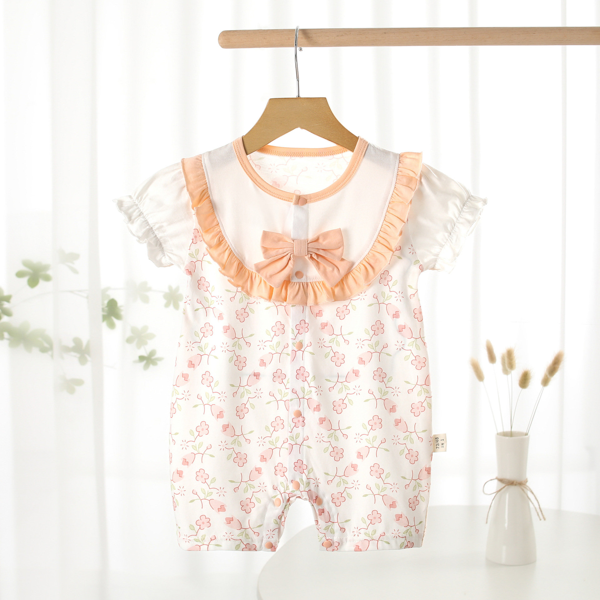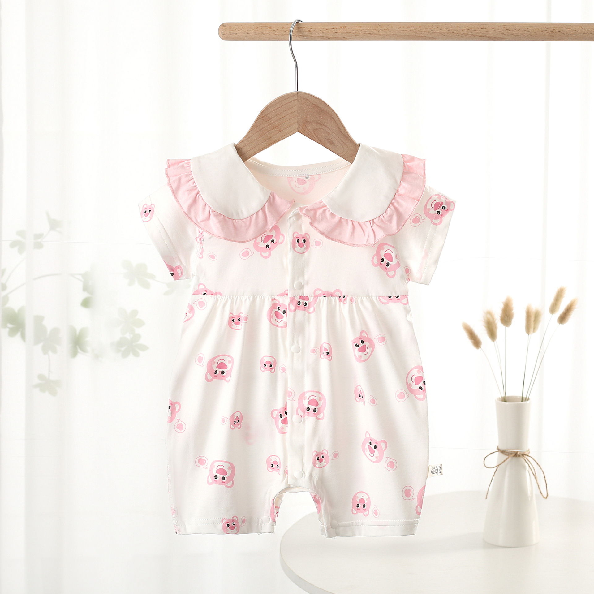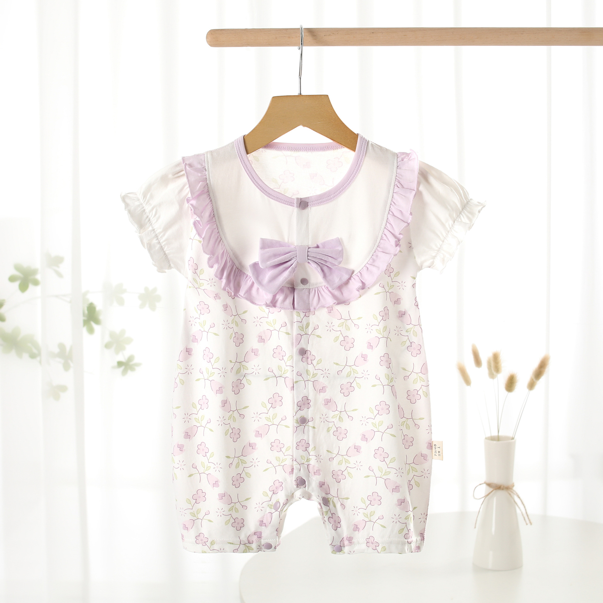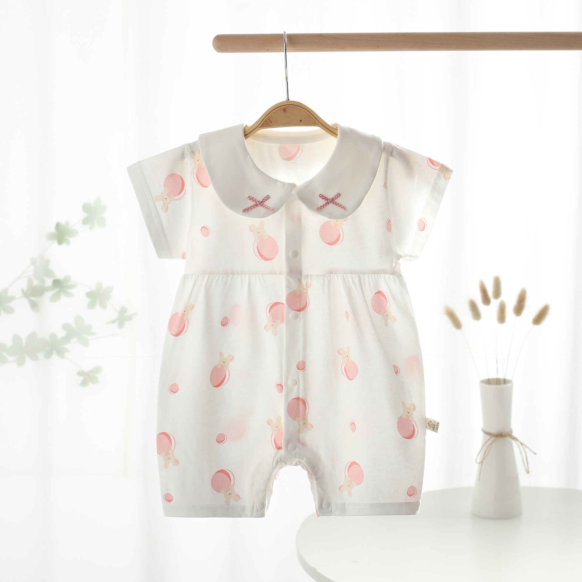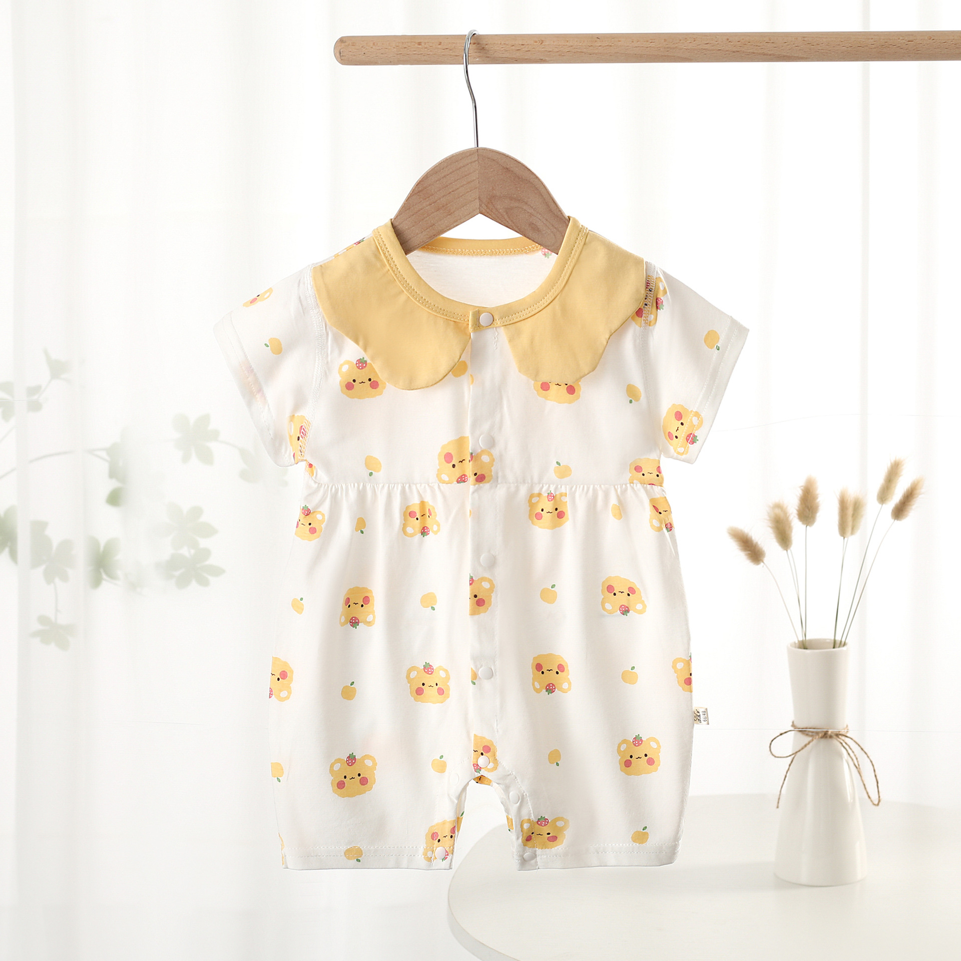 여름 AA급 순면 얇은 점프수트 아기 반팔 크롤링 슈트 작은 공주 보름달 에어컨 옷 신생아 옷스토어 가기