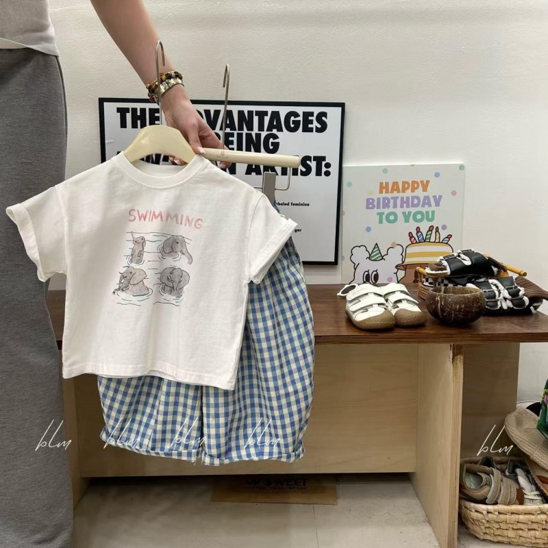 재고 있음! 아동용 순면 반팔 세트 남아용 2025 여름 통기성 좋은 아기 만화 POLO 셔츠 투피스 세트 도매스토어 가기