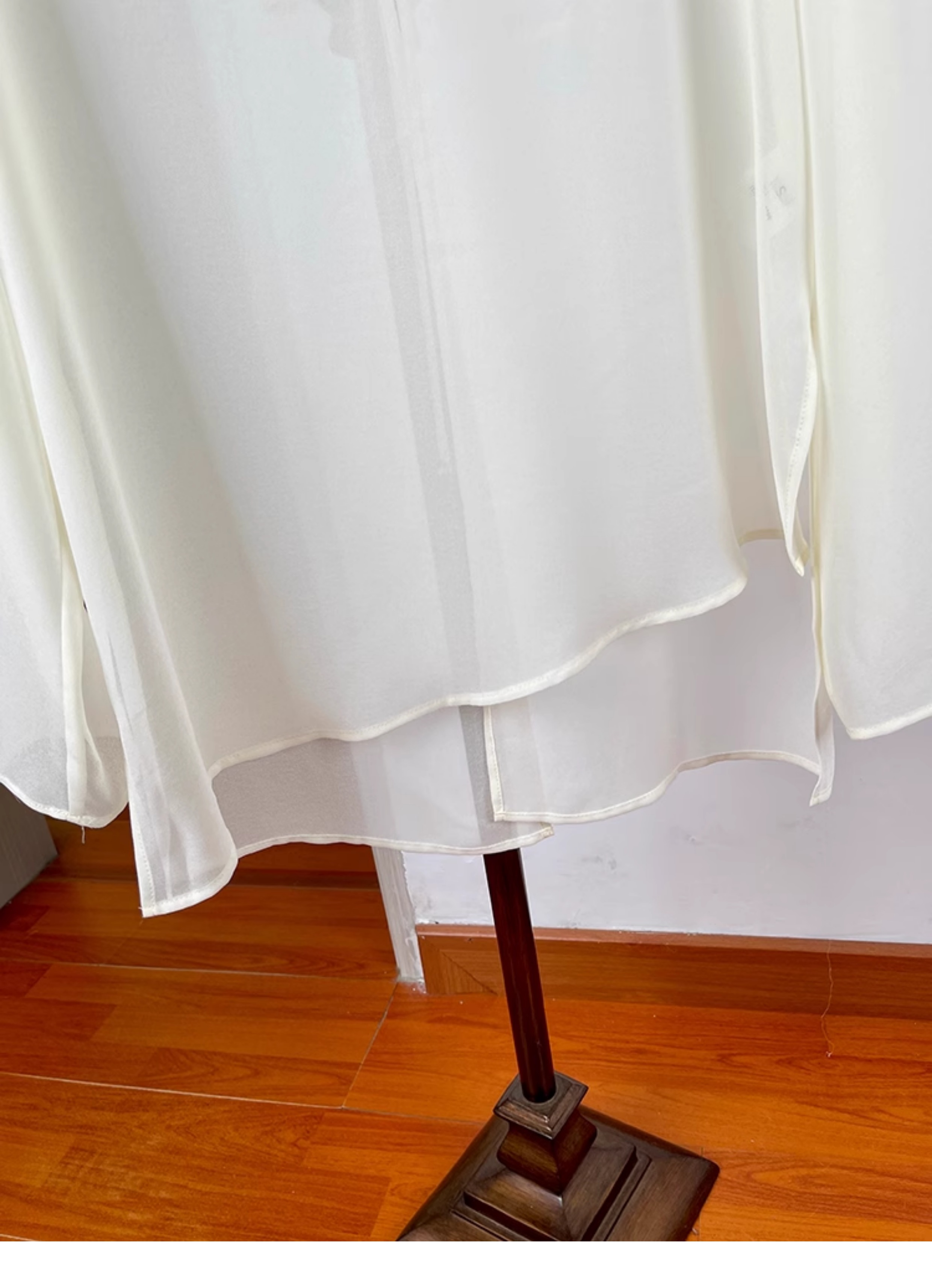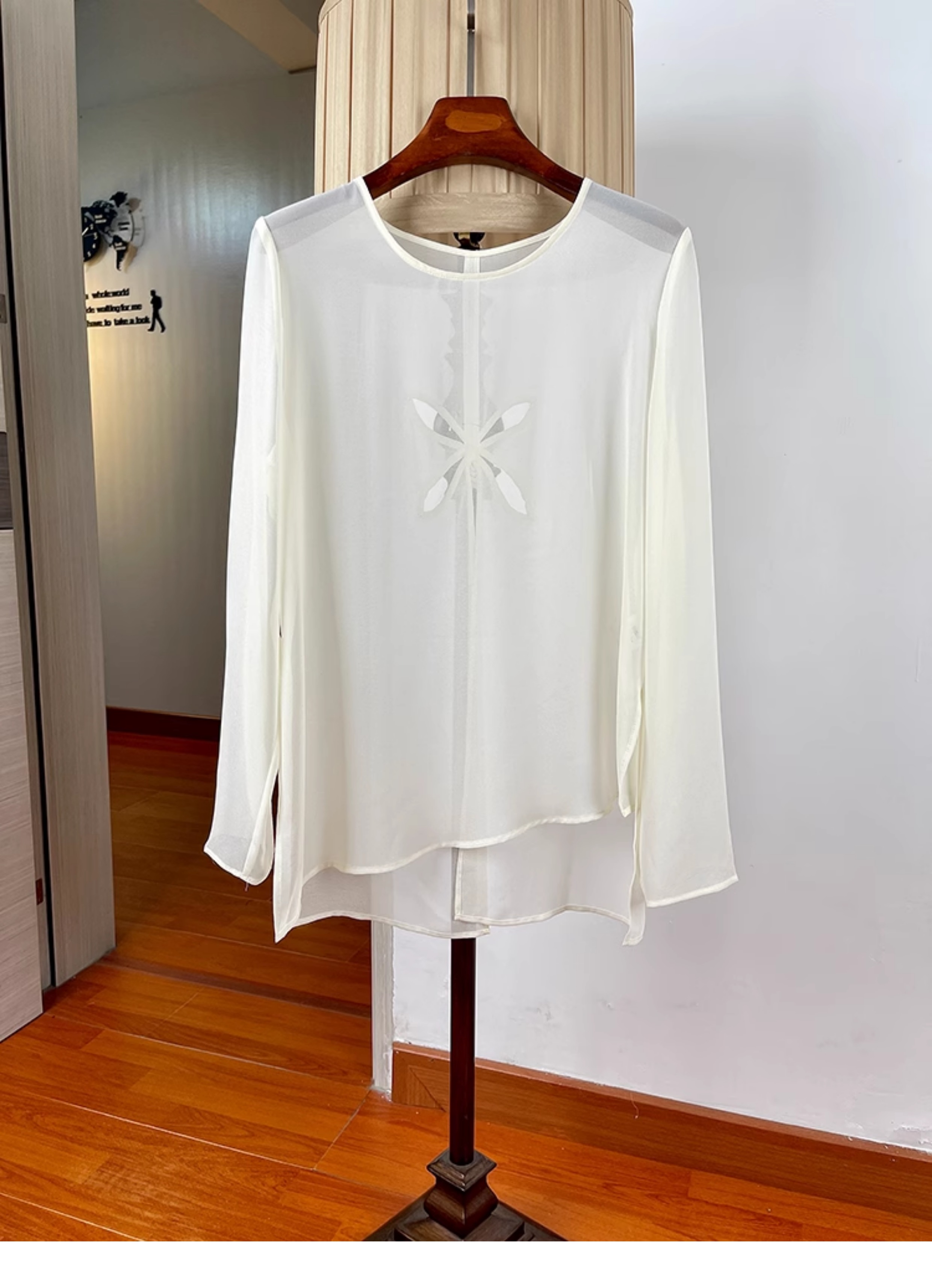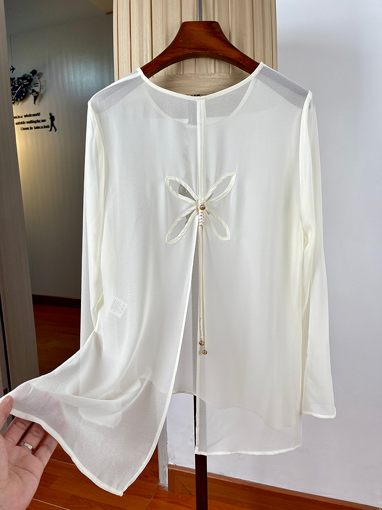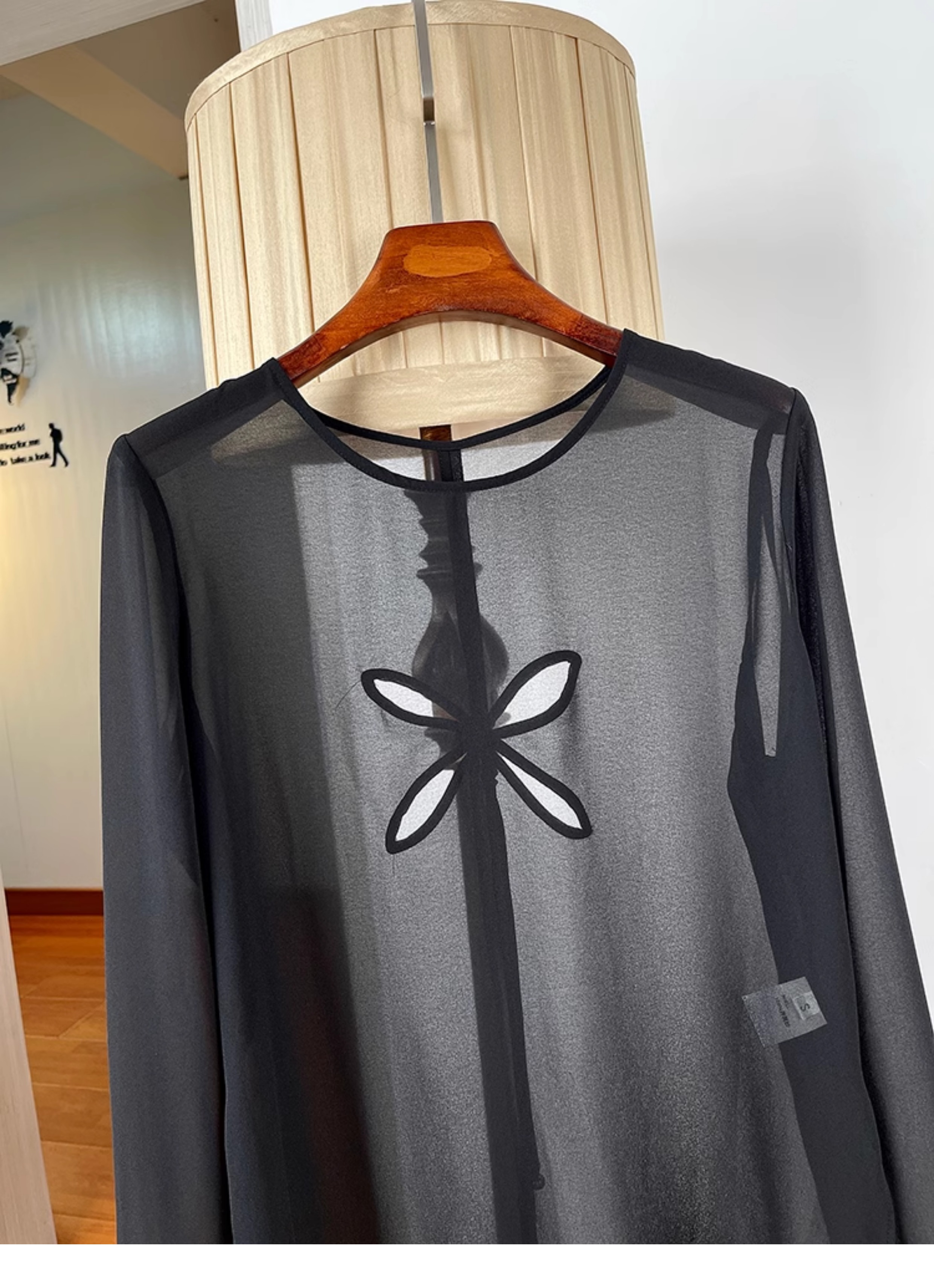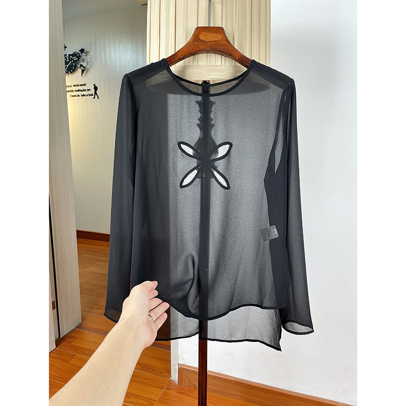 Perspective Tulle Blouse 느슨한 배꼽 커버 쉬폰 블라우스 여성의 여름 얇은 불규칙 Hem Georgette 선 스크린 탑스토어 가기
