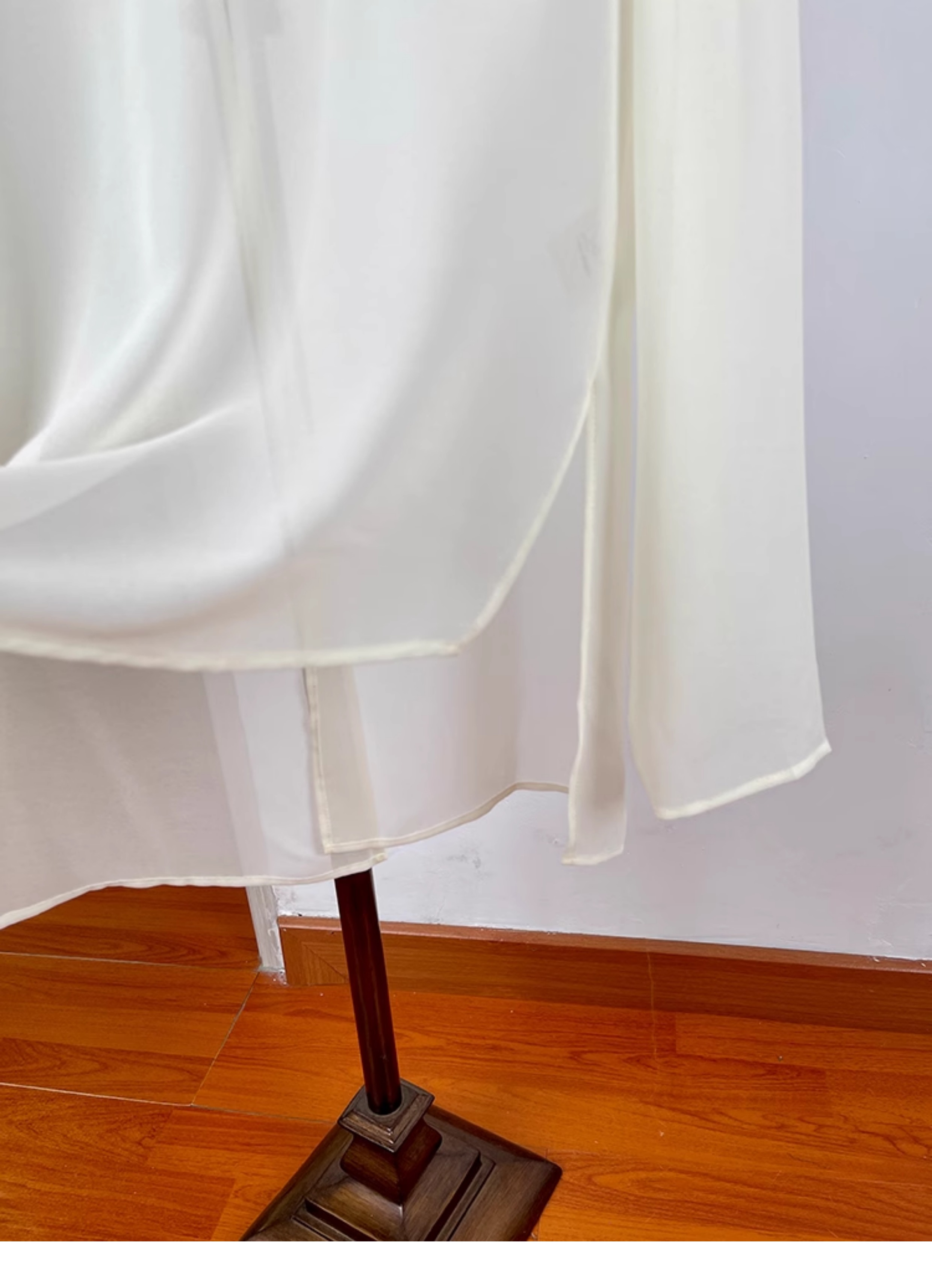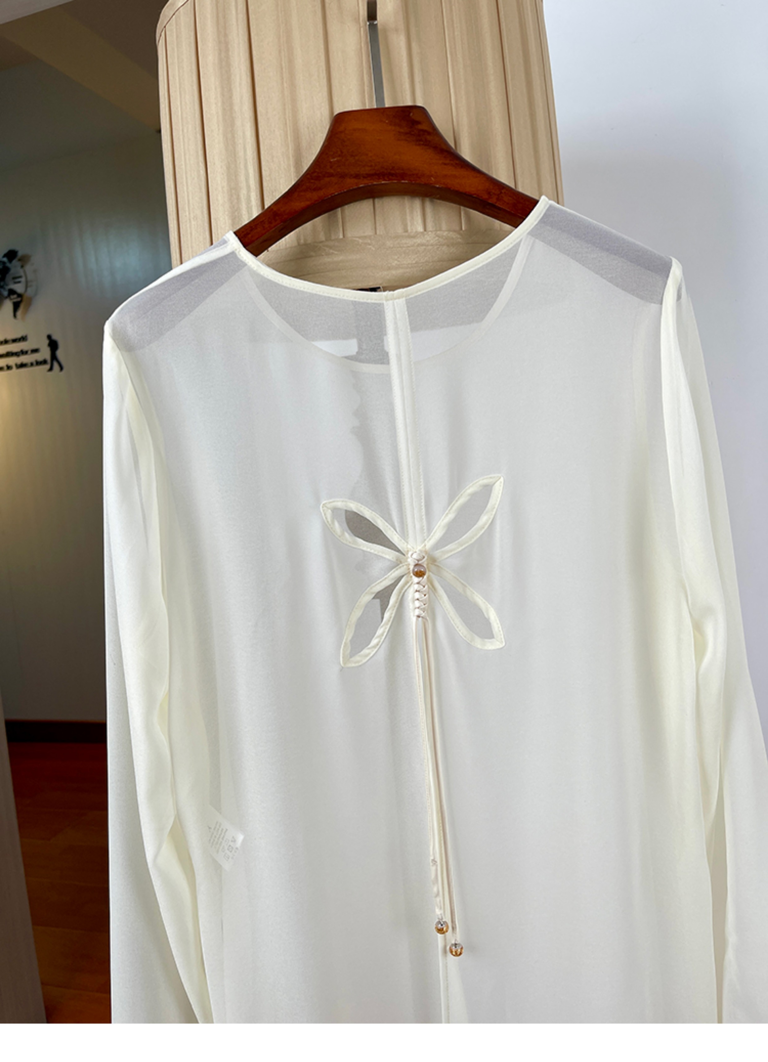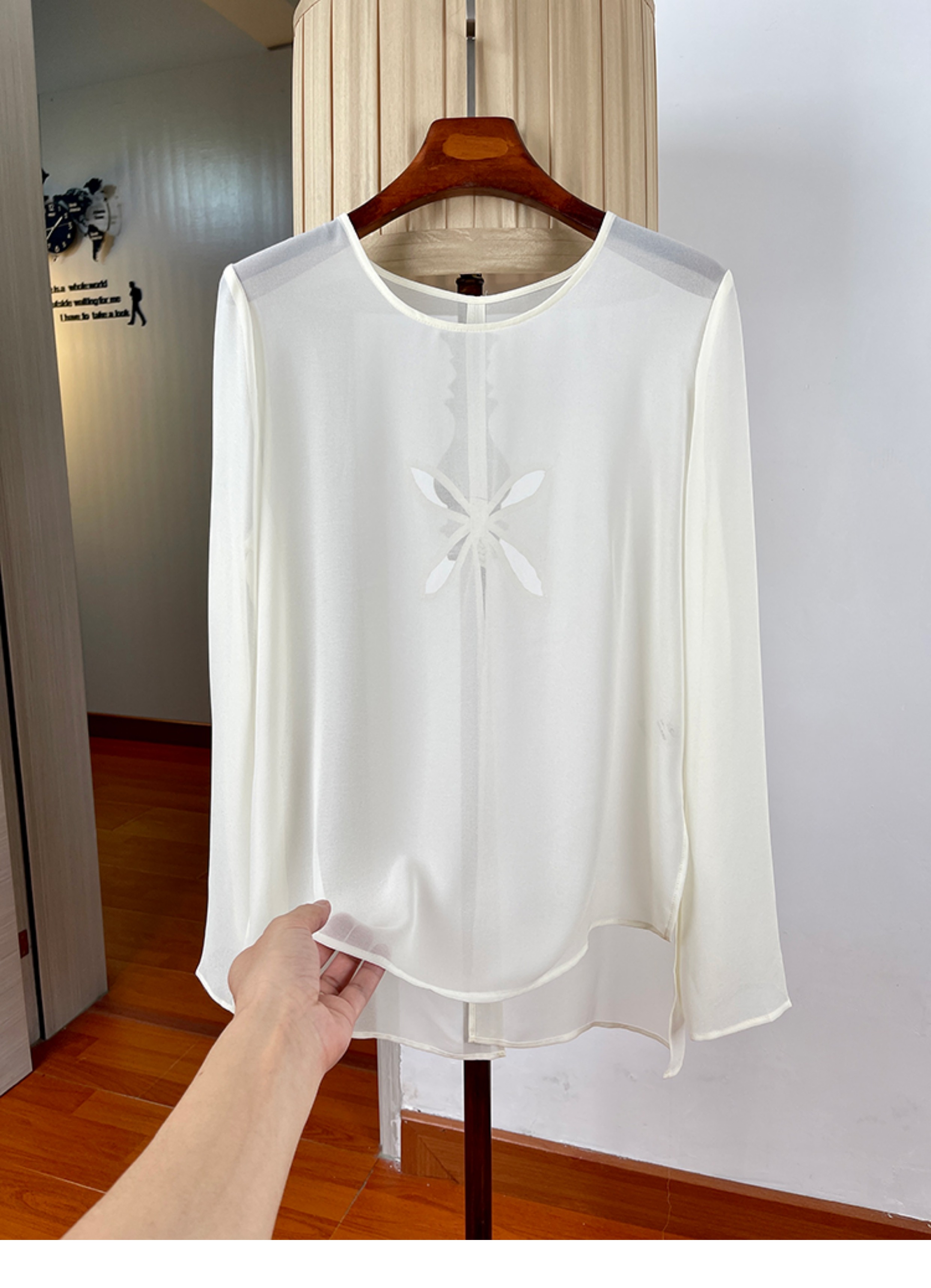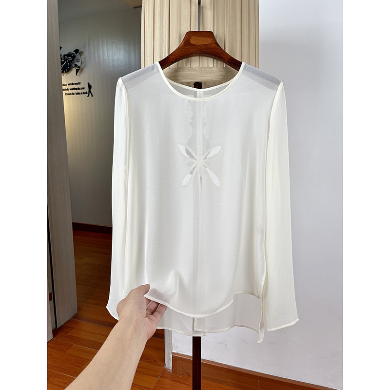 Perspective Tulle Blouse 느슨한 배꼽 커버 쉬폰 블라우스 여성의 여름 얇은 불규칙 Hem Georgette 선 스크린 탑스토어 가기