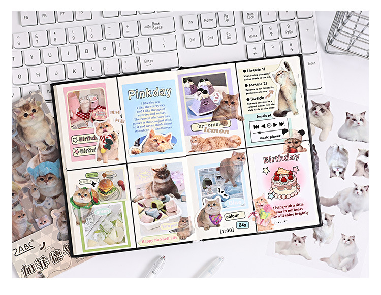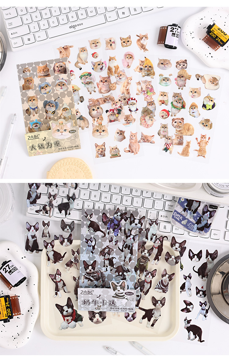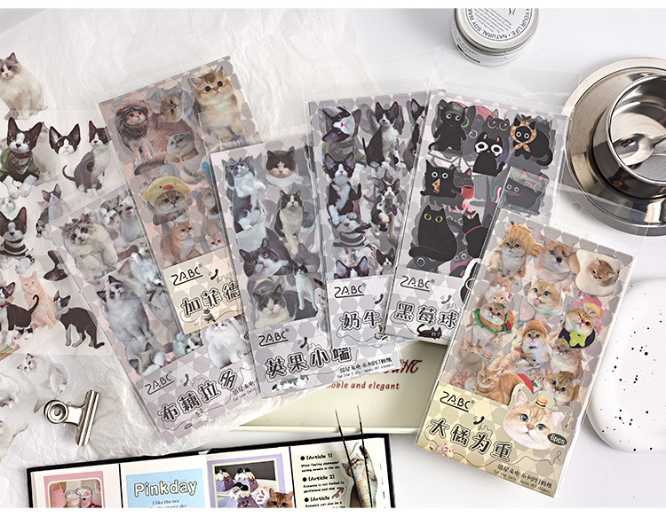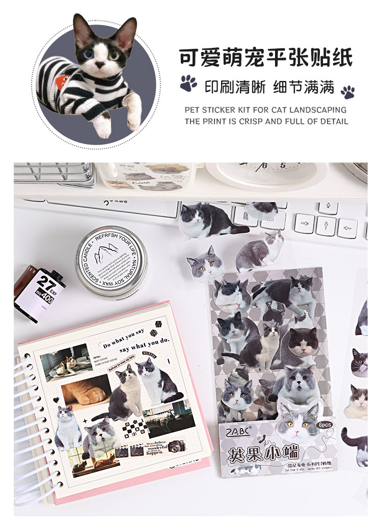 야옹 스타 콜 투명 방수 애완 동물 스티커 diy 손 계정 일기 장식 소재 만화 고양이 동물 문구 스티커