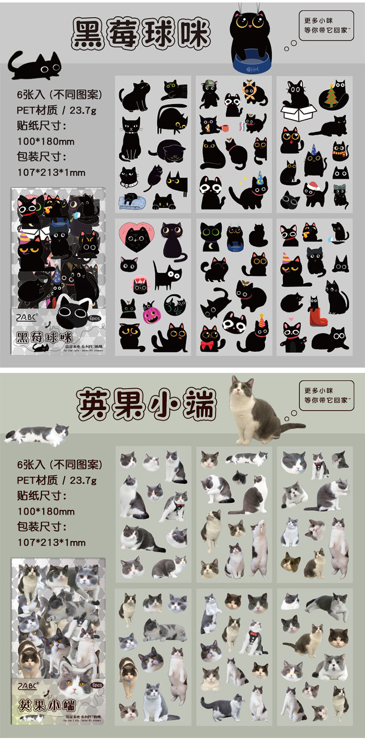 야옹 스타 콜 투명 방수 애완 동물 스티커 diy 손 계정 일기 장식 소재 만화 고양이 동물 문구 스티커스토어 가기