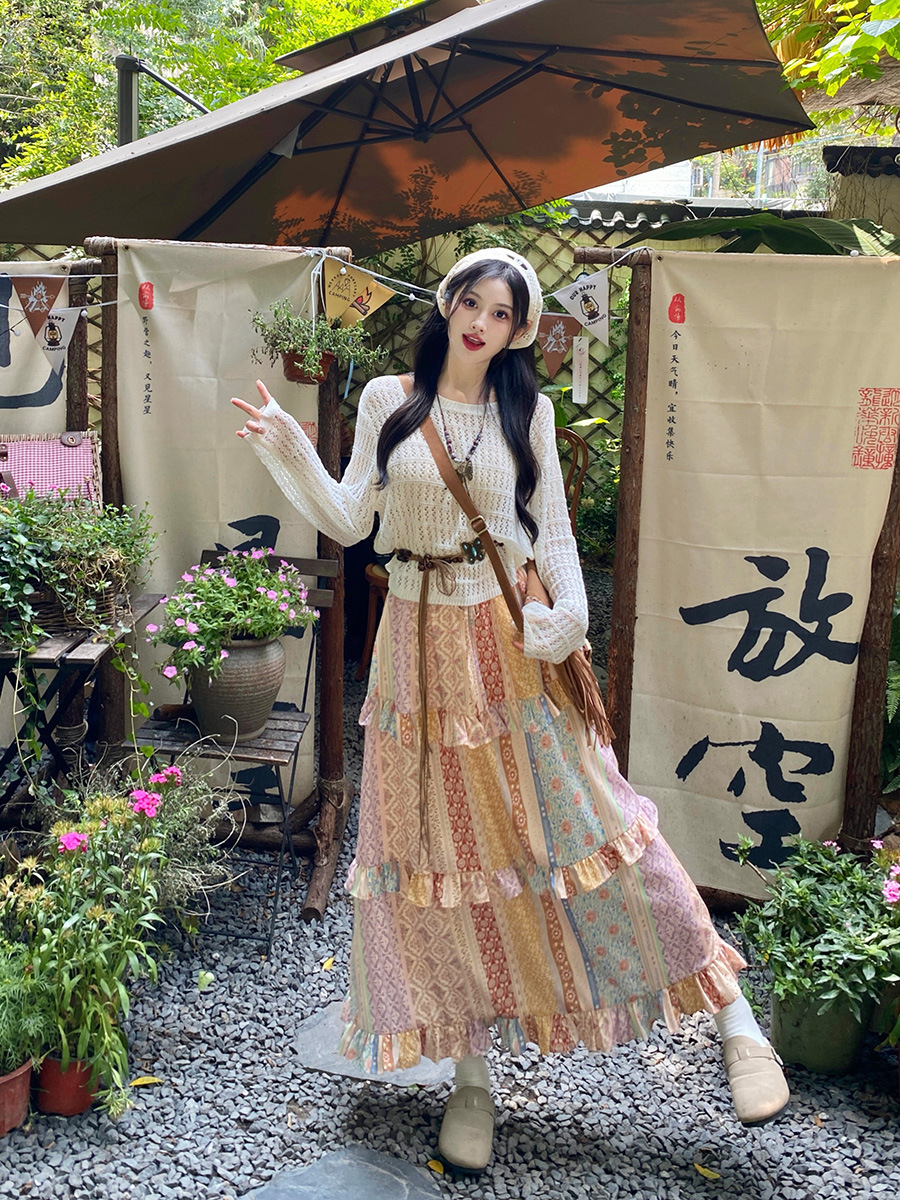 2025년 플러스 사이즈 여성복 북도우 스타일 휴가 여행복 세트 민족풍 스커트 레이스 탑스토어 가기