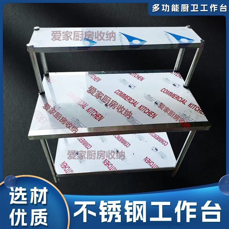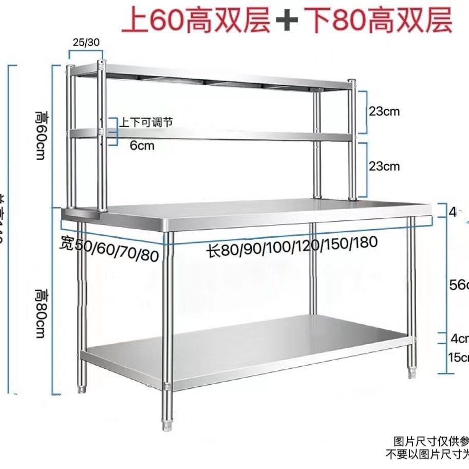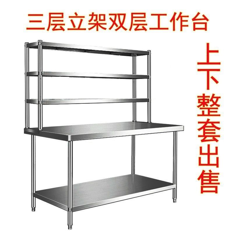 단단하고 두꺼운 스테인레스 스틸 작업대 더블 레이어 테이블 저장 절단 및 조미료 테이블 상단 플러스 스탠드 스테인레스 스틸 스토리지 랙