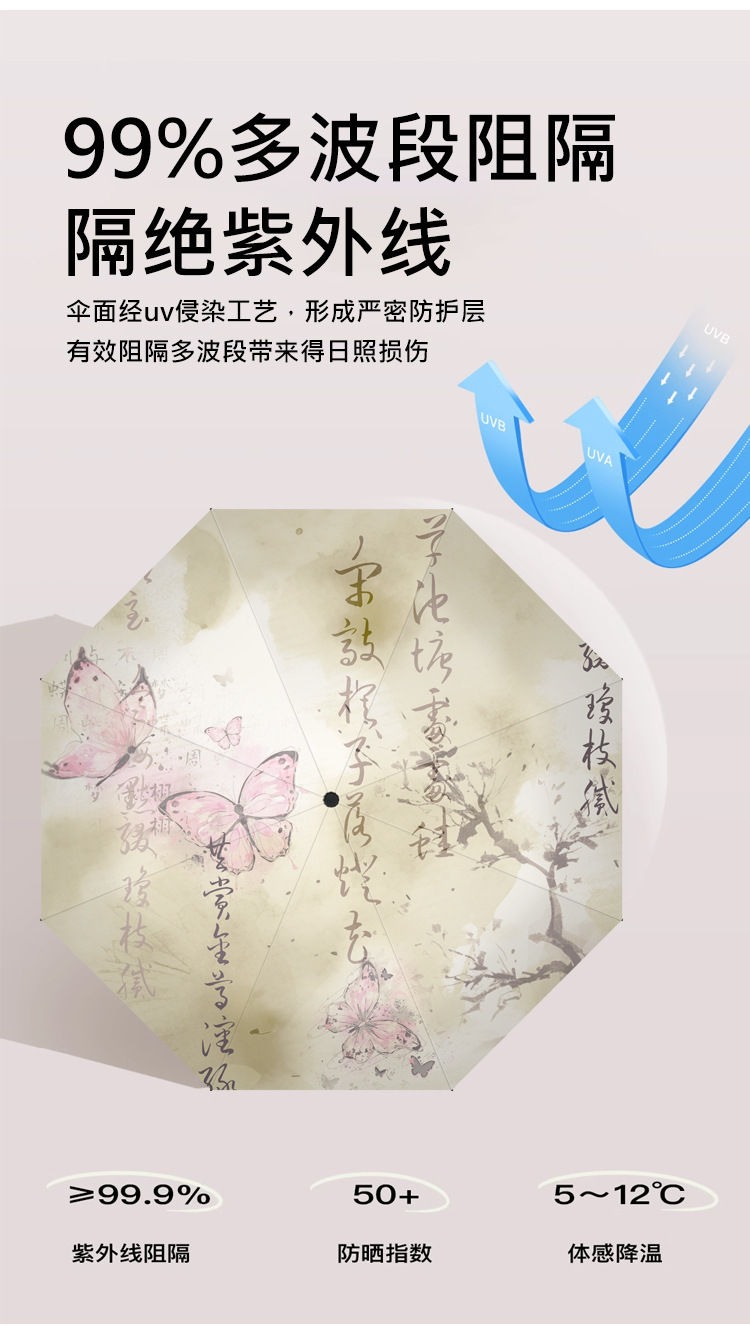 공장 도매 자동 접이식 우산 UV 선 스크린 태양 우산 검은 고무 비 우산 광고