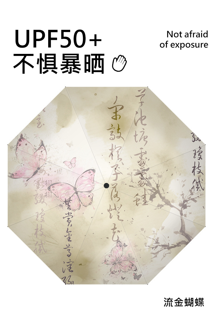 공장 도매 자동 접이식 우산 UV 선 스크린 태양 우산 검은 고무 비 우산 광고스토어 가기