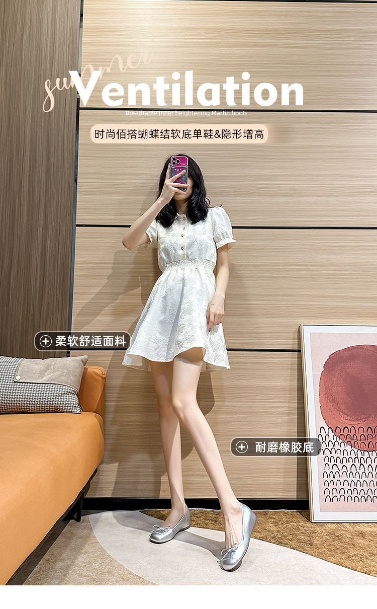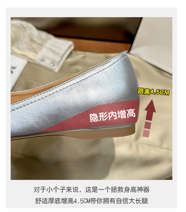 우아한 발레 신발 프랑스 스타일 스퀘어 발가락 얕은 탑 보우 피트 작은 내부 높이 부드러운 바닥 펌프 여성을위한 모든 싱글 레이어 신발스토어 가기