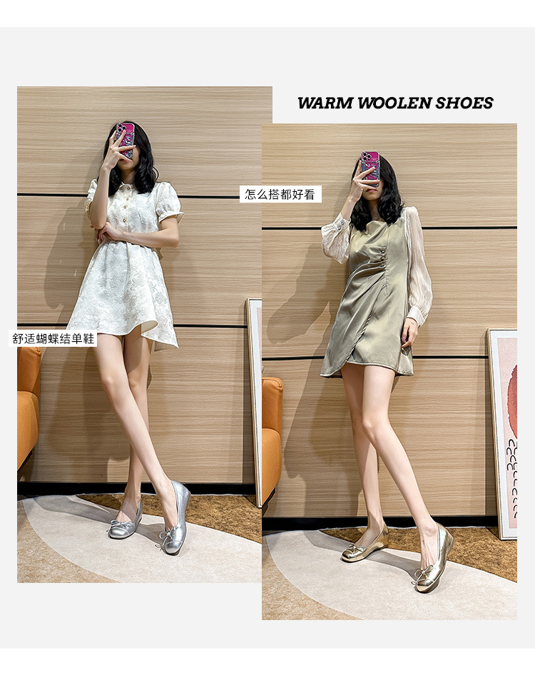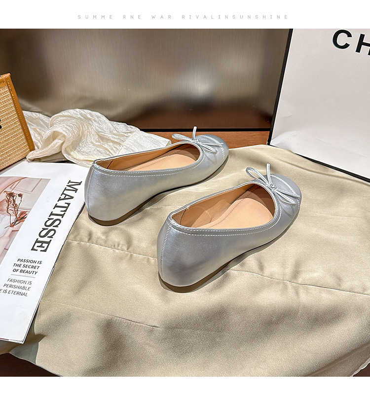 우아한 발레 신발 프랑스 스타일 스퀘어 발가락 얕은 탑 보우 피트 작은 내부 높이 부드러운 바닥 펌프 여성을위한 모든 싱글 레이어 신발