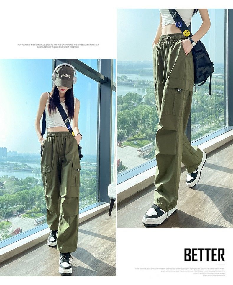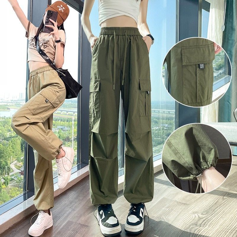 미국식 바지 여성 여름 얇은 2024 새로운 등산 빠른 건조 캐주얼 패션 아이스 실크 선 스크린 스포츠 바지스토어 가기