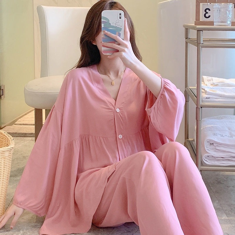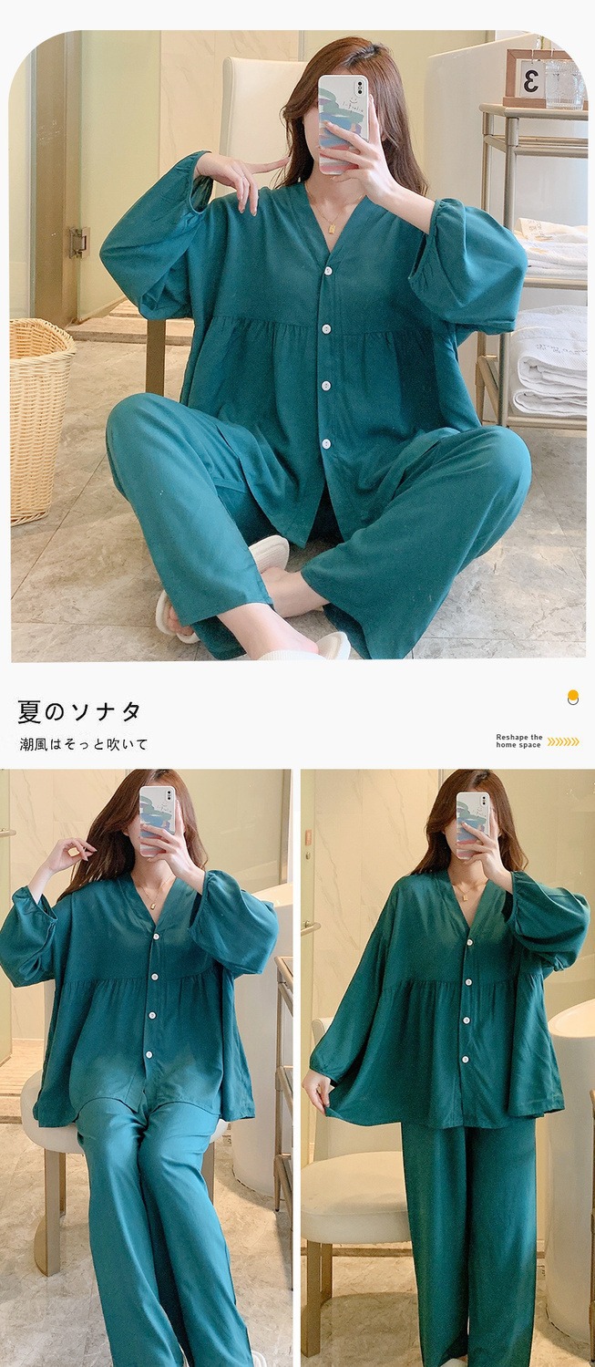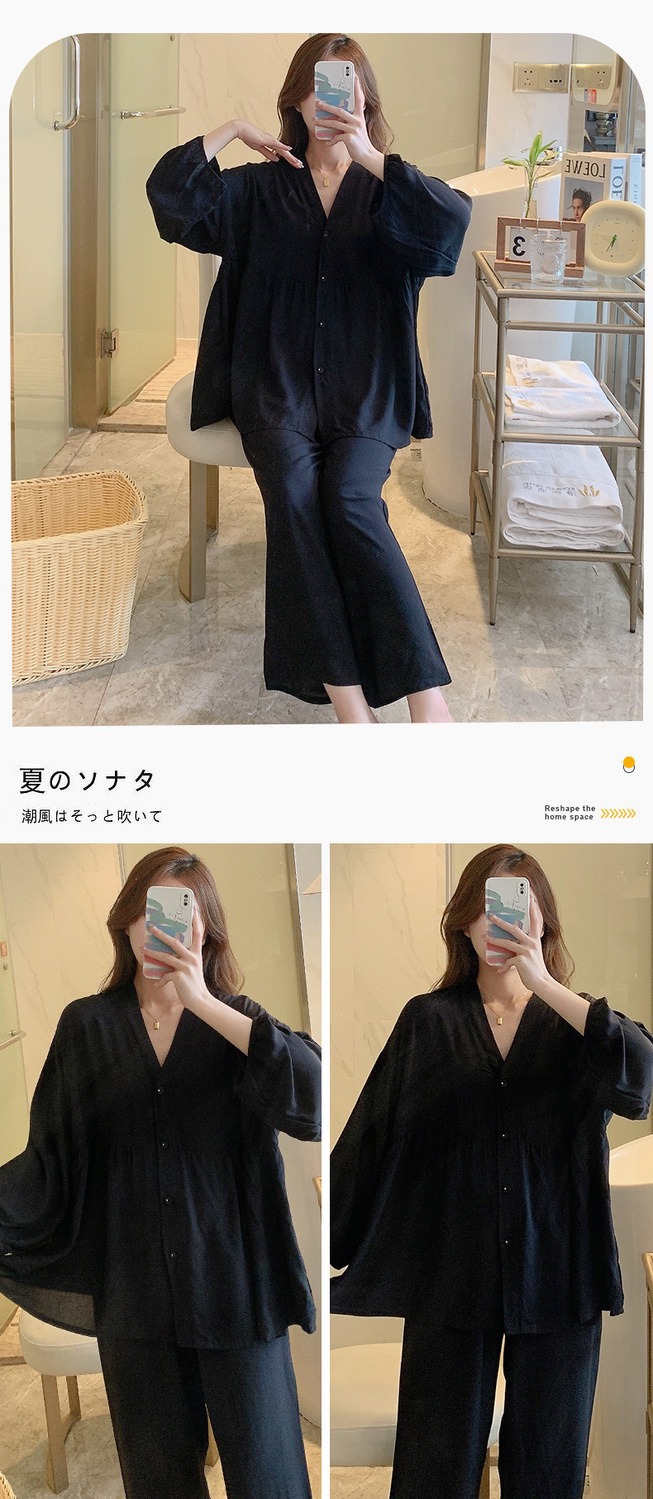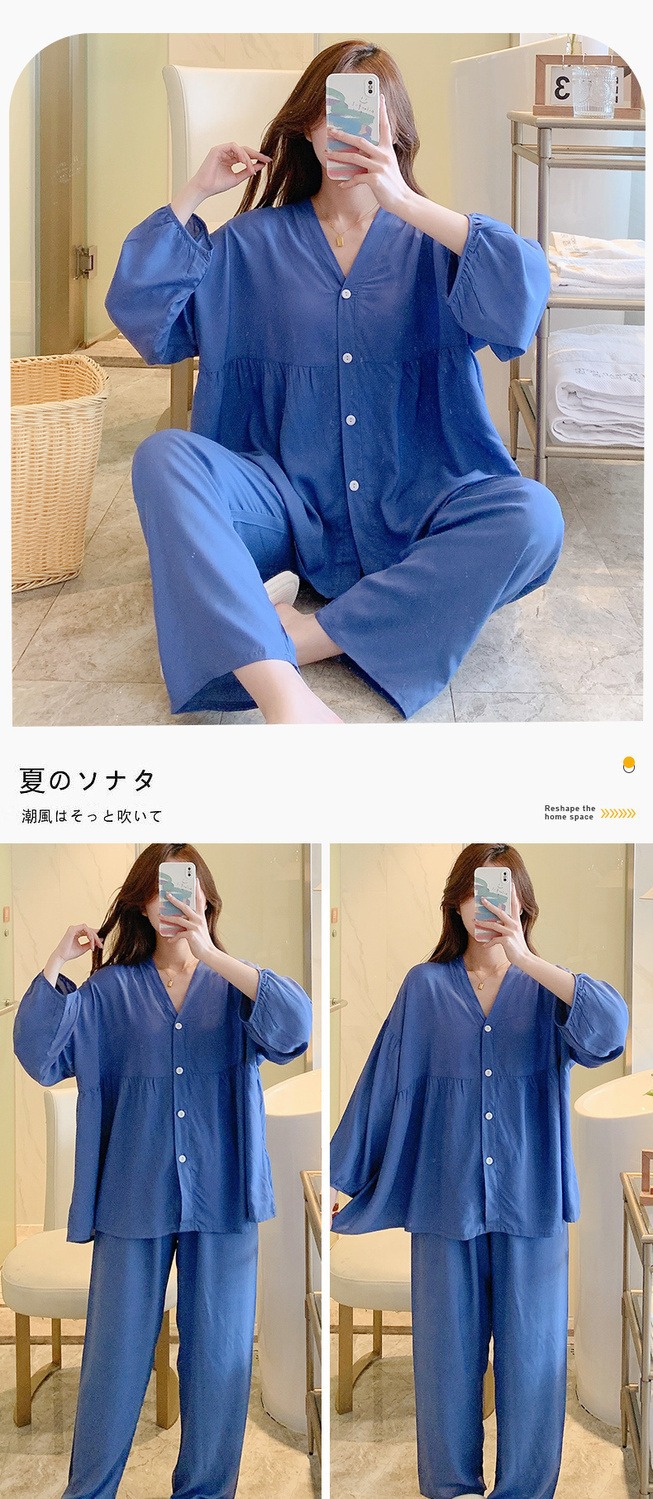 40 7 소매면 실크 잠옷 여성의 얇은 세트 단색 편안한 통기성 달 옷은 가정 옷 밖에서 입을 수 있습니다.스토어 가기