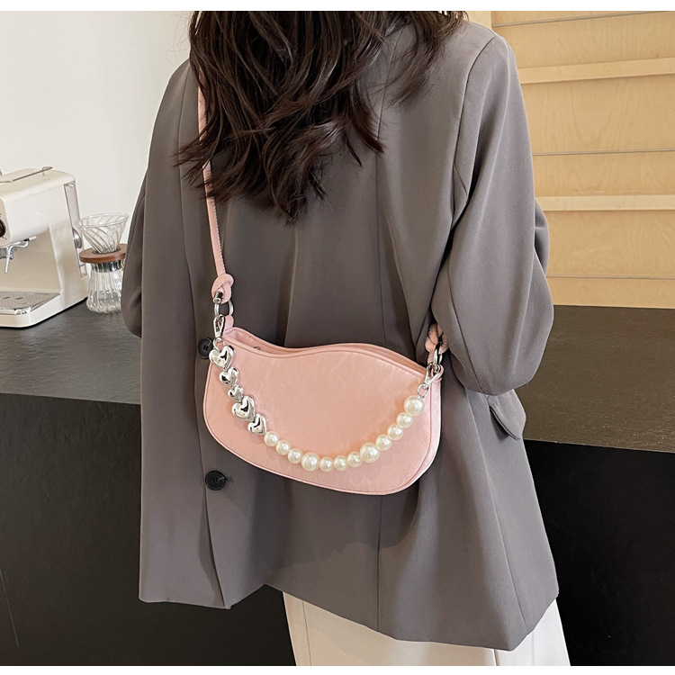 디자인 진주 속옷 작은 가방 여성의 2024 새로운 패션 통근 어깨 가방 패션 질감 크로스 바디 가방스토어 가기