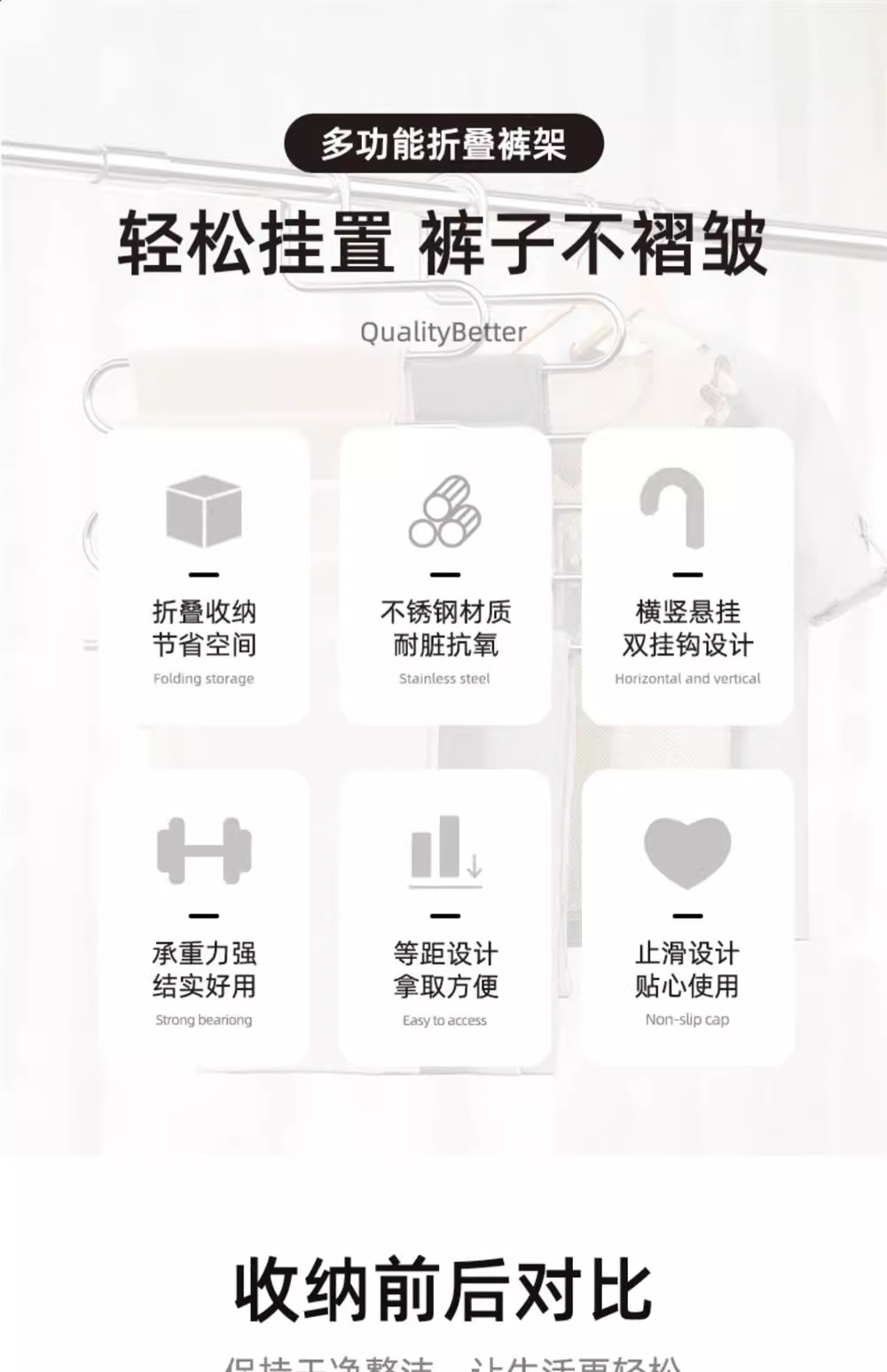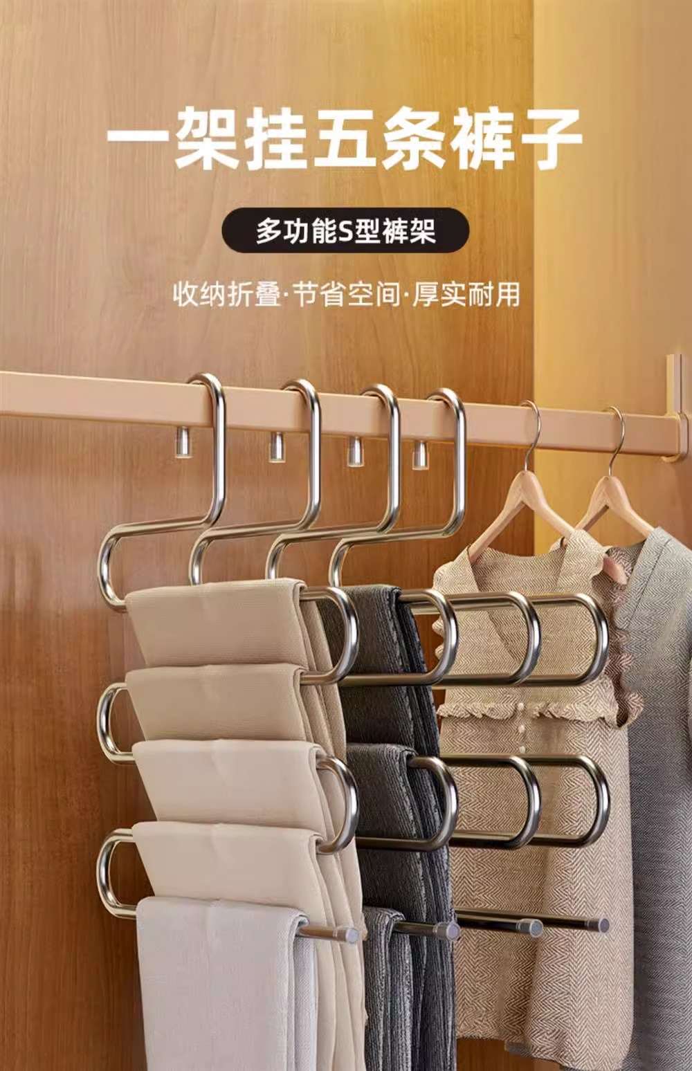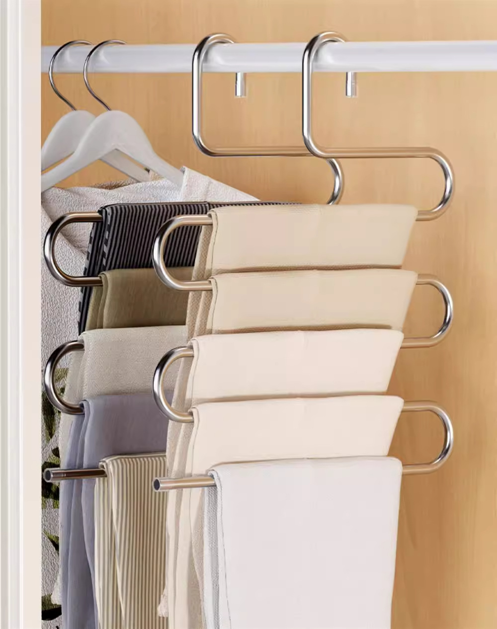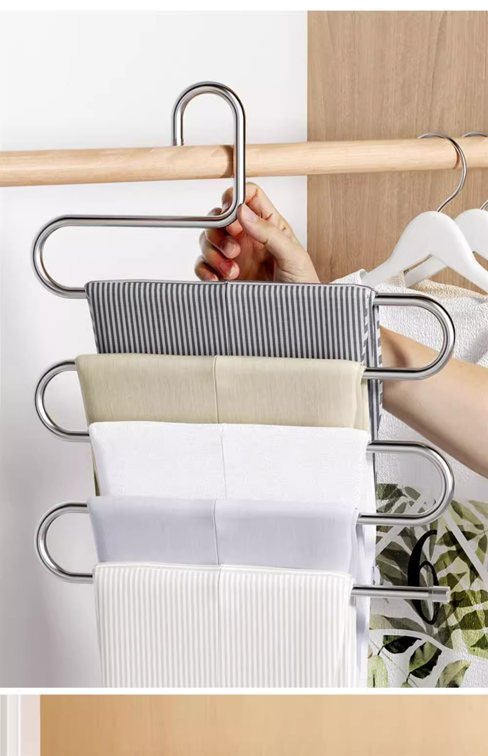 접이식 바지 랙 다기능 다층 바지 두껍고 두꺼운 가정용 미끄럼 방지 원활한 바지 클립 옷장 보관 아티팩트