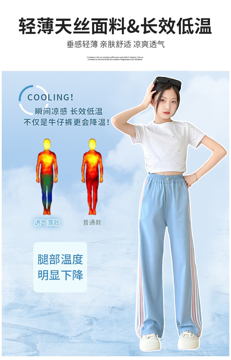 소녀 바지 2024 여름 새로운 모기 방지 바지 어린이 얇은 텐셀 바지 소녀 캐주얼 느슨한 청바지 여름스토어 가기