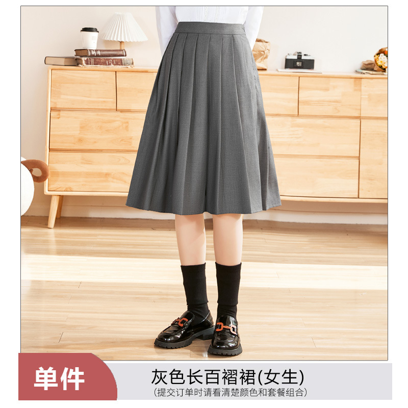 • 큰 소녀 회색 Q55 주름 치마 (무릎 위)