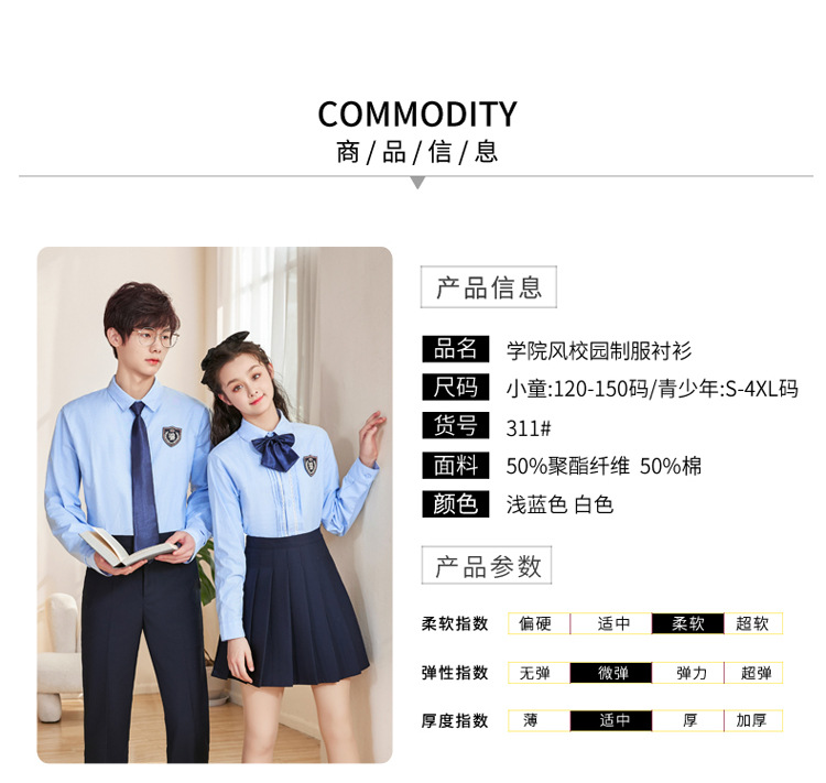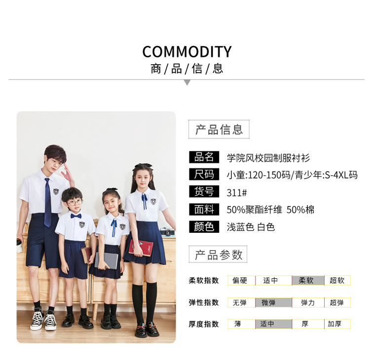 반소매 화이트 셔츠 초등 및 중등 학교 학생 교복 졸업 공연 6 월 1 일 대학 스타일 세트 긴팔 셔츠 기지스토어 가기