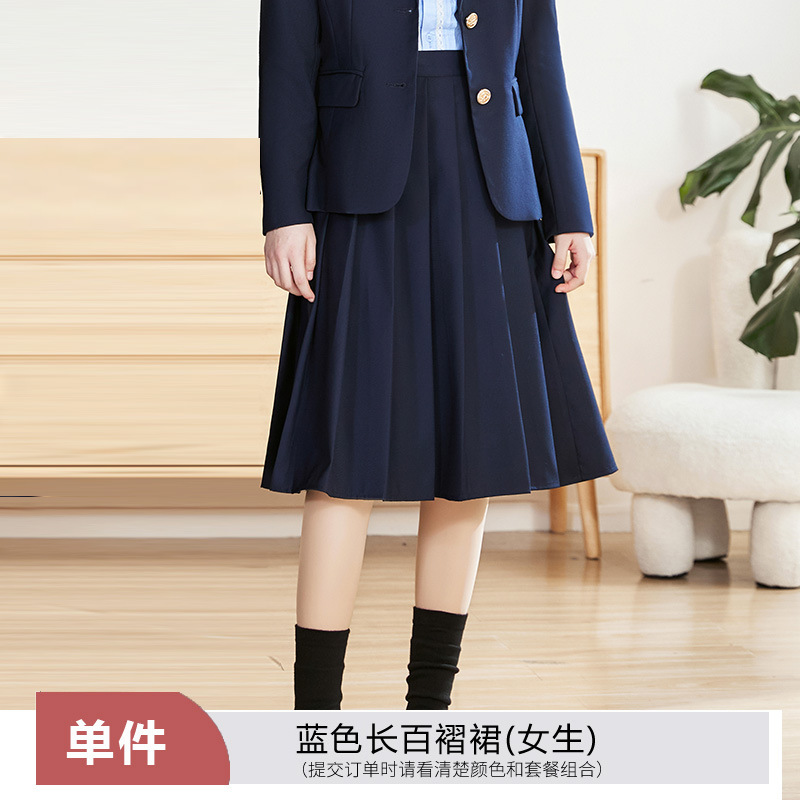 • 큰 소녀 블루 Q55 주름 치마 (무릎)