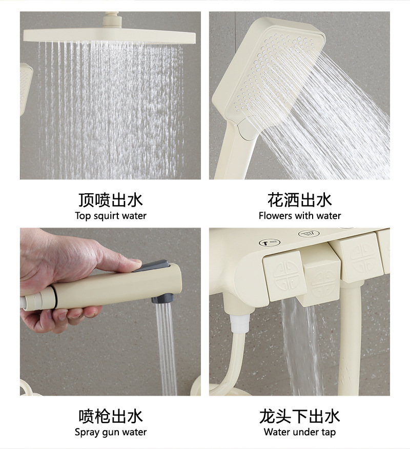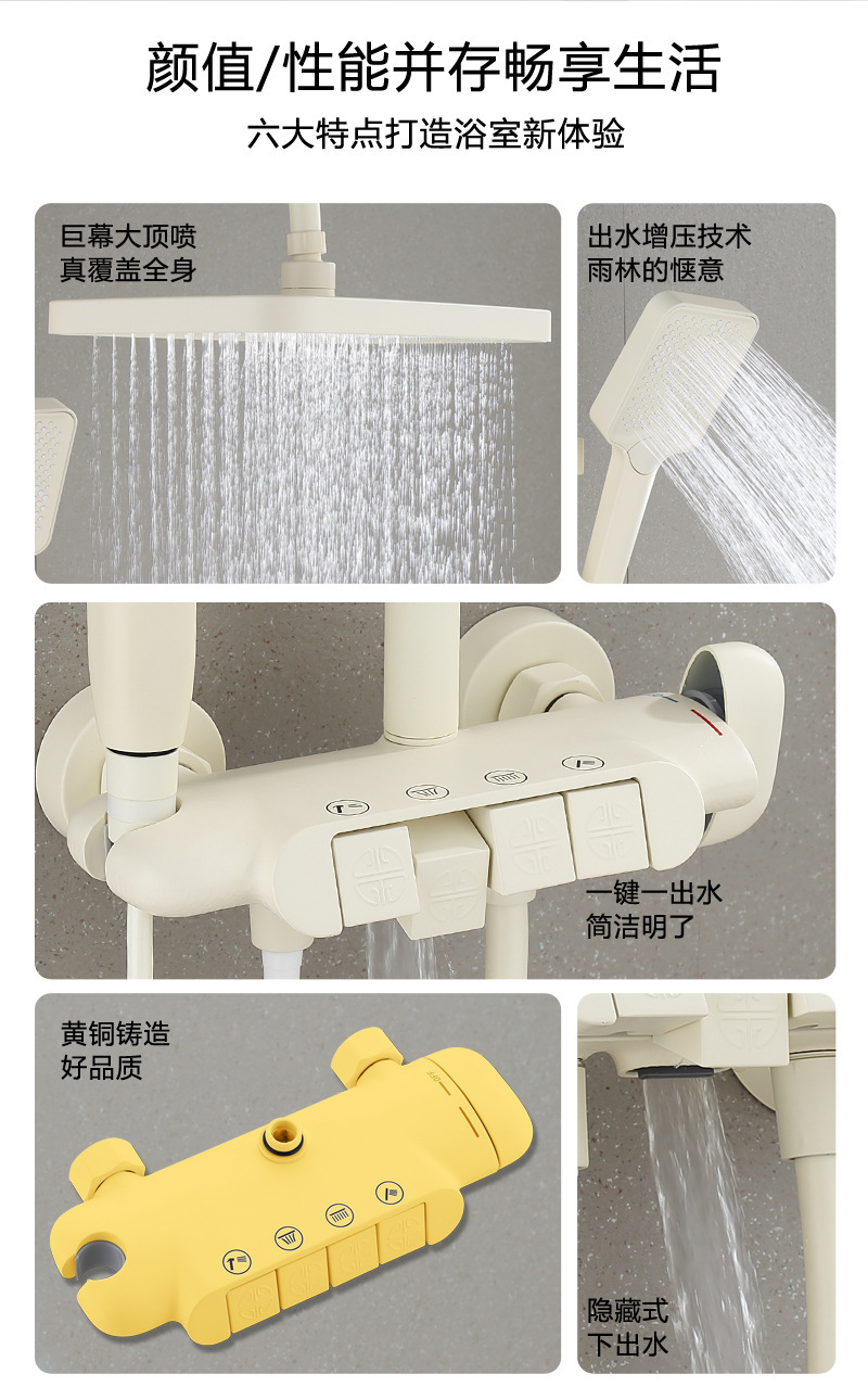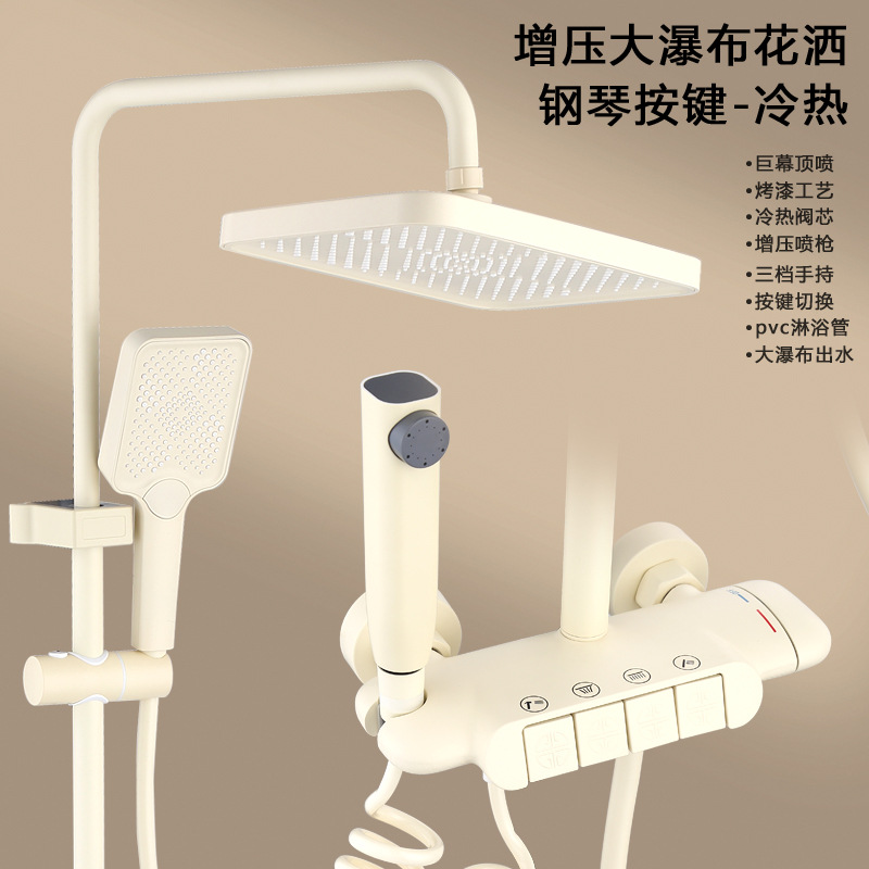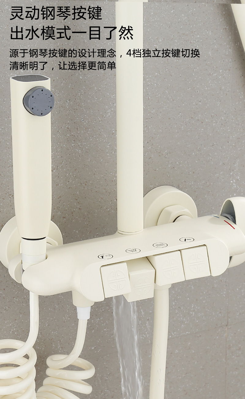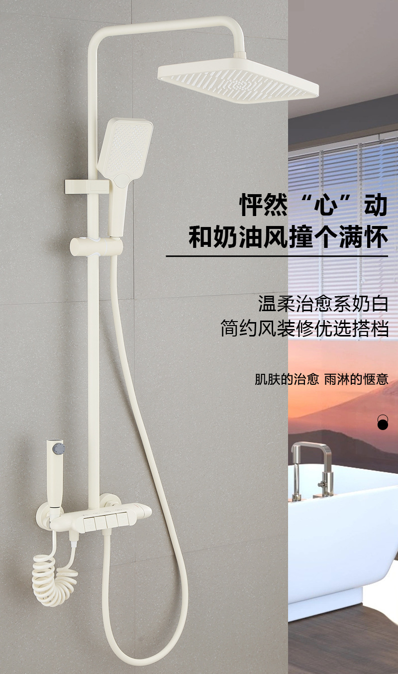 백색 가압 샤워 마셜 크림 바람 일정한 온도 샤워 세트 가구 모든 구리 욕실 욕조 샤워스토어 가기