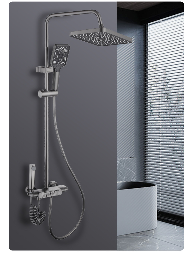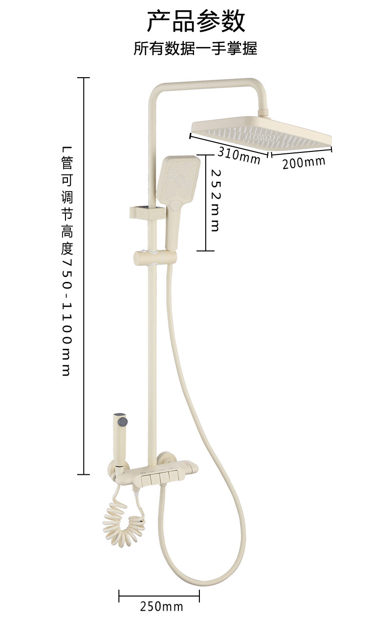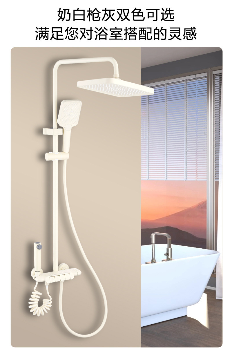 백색 가압 샤워 마셜 크림 바람 일정한 온도 샤워 세트 가구 모든 구리 욕실 욕조 샤워