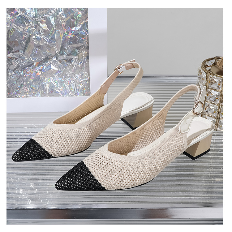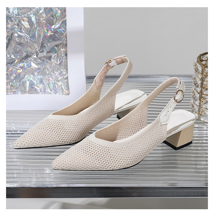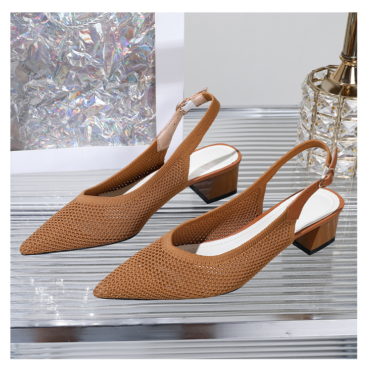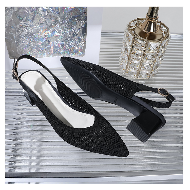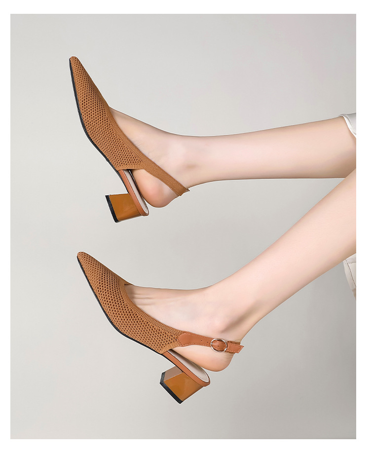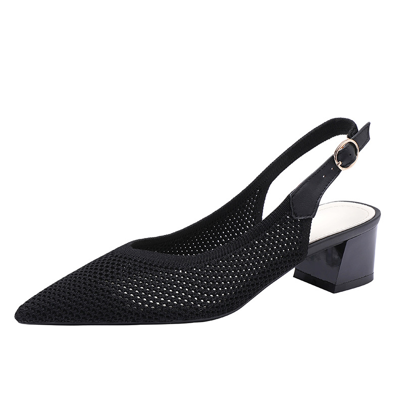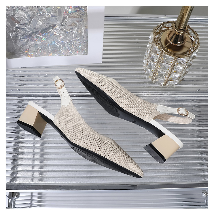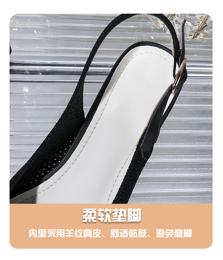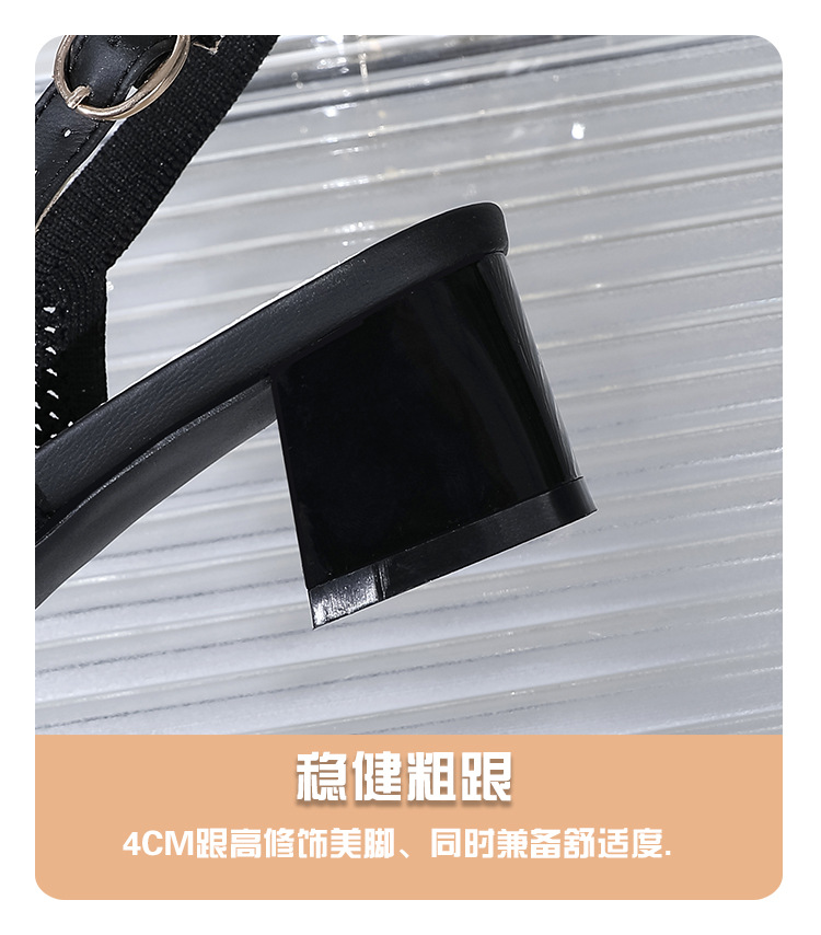 왕세자비 스타일 샌들, 통굽 샌들, 큰 사이즈 여성화, 짜임새 있는 부드러운 밑창, 스트랩 디자인, 패셔너블한 플라이 니트, 미들힐, 하이힐, 여름용스토어 가기