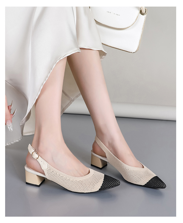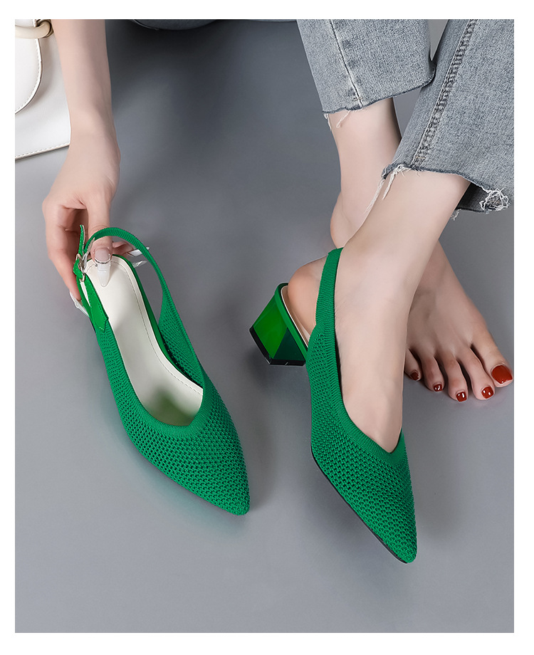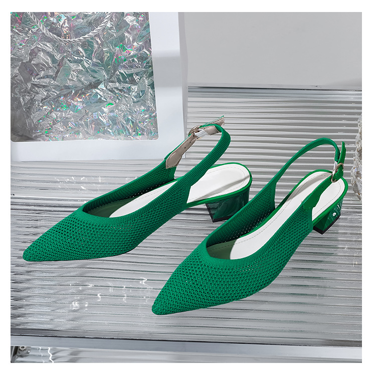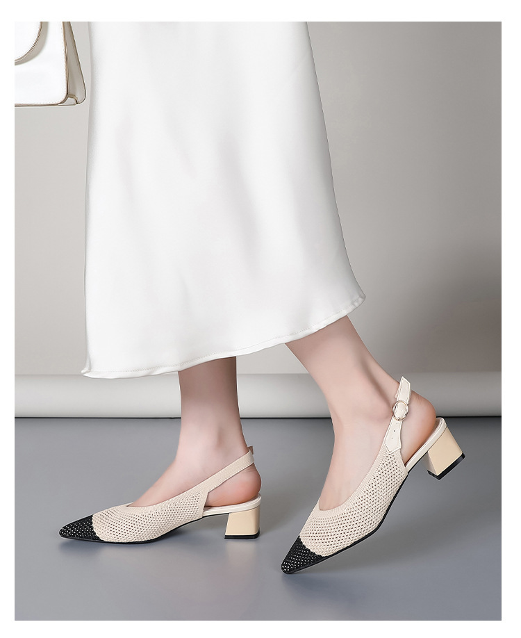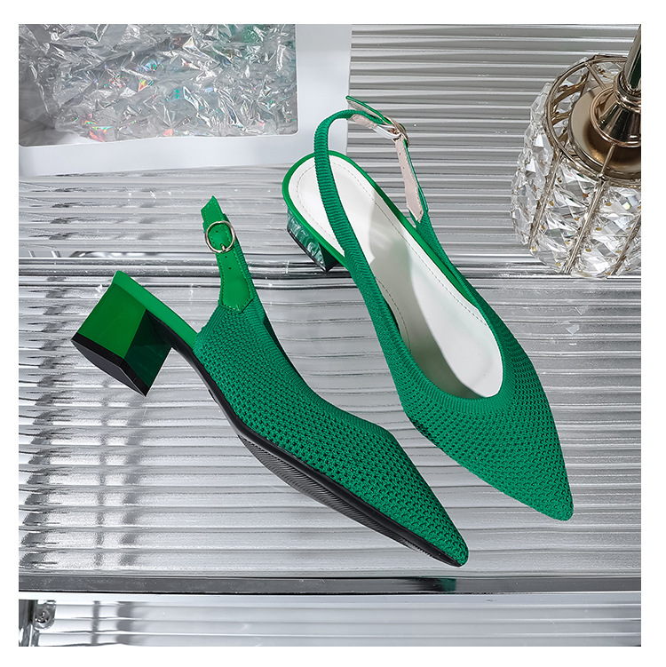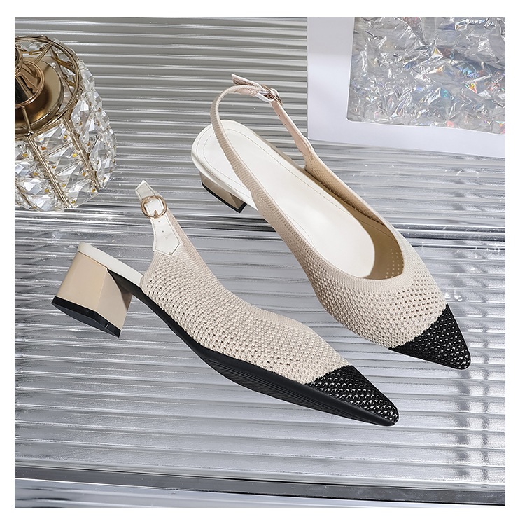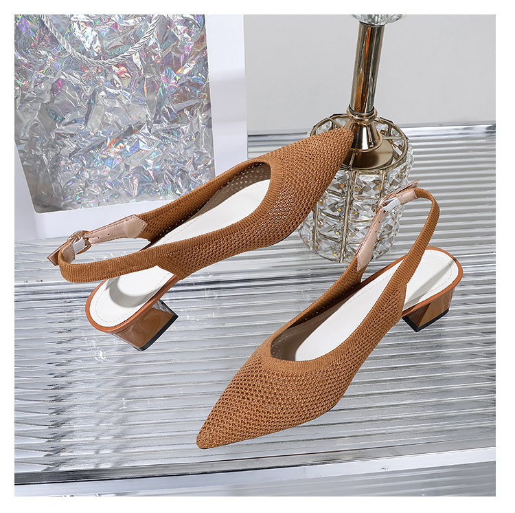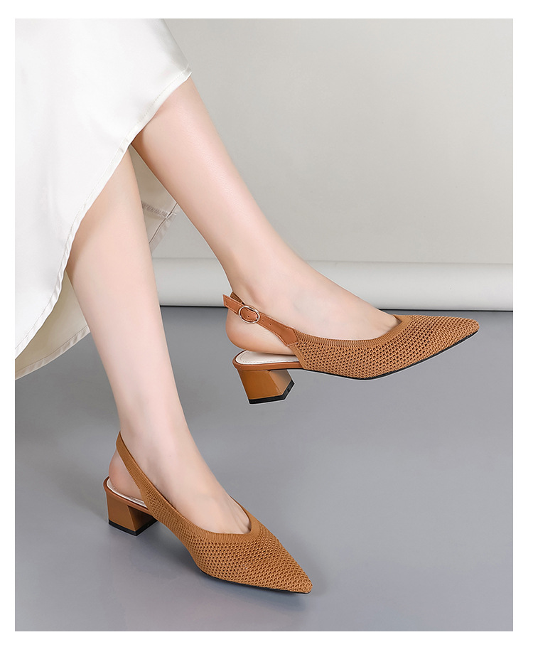 왕세자비 스타일 샌들, 통굽 샌들, 큰 사이즈 여성화, 짜임새 있는 부드러운 밑창, 스트랩 디자인, 패셔너블한 플라이 니트, 미들힐, 하이힐, 여름용스토어 가기