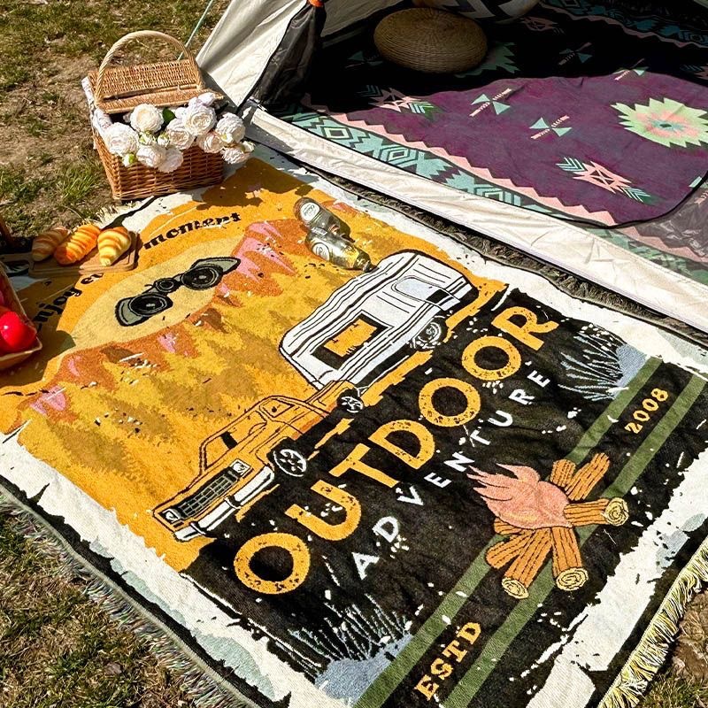 야외 캠핑 피크닉 장식 천 캠프 야외 아메리칸 스타일 복고풍 배경 천 하이킹 피크닉 매트 장비스토어 가기